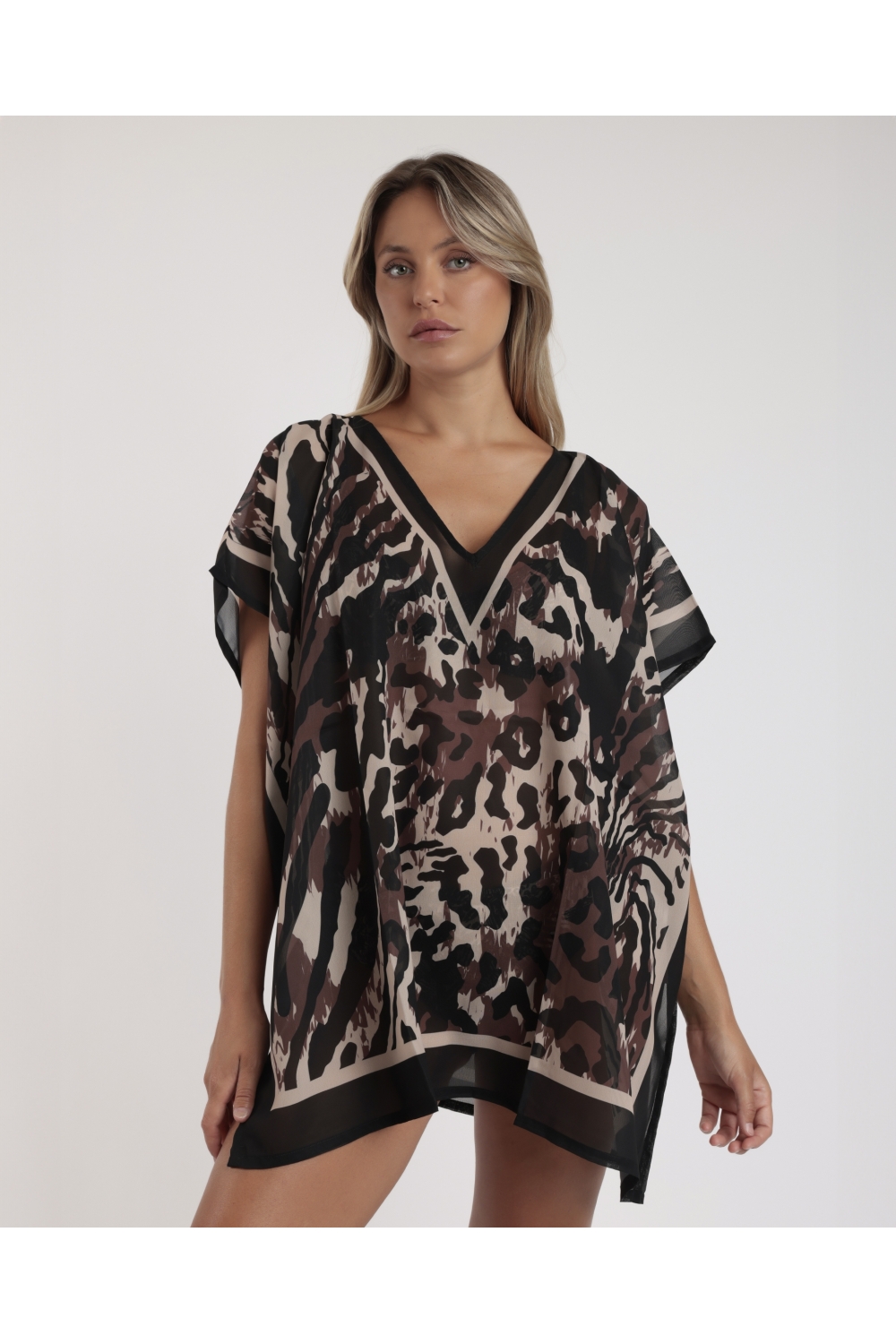 * Vestido de playa para mujer, de cuello pico, de diseño veraniego, en color piel.