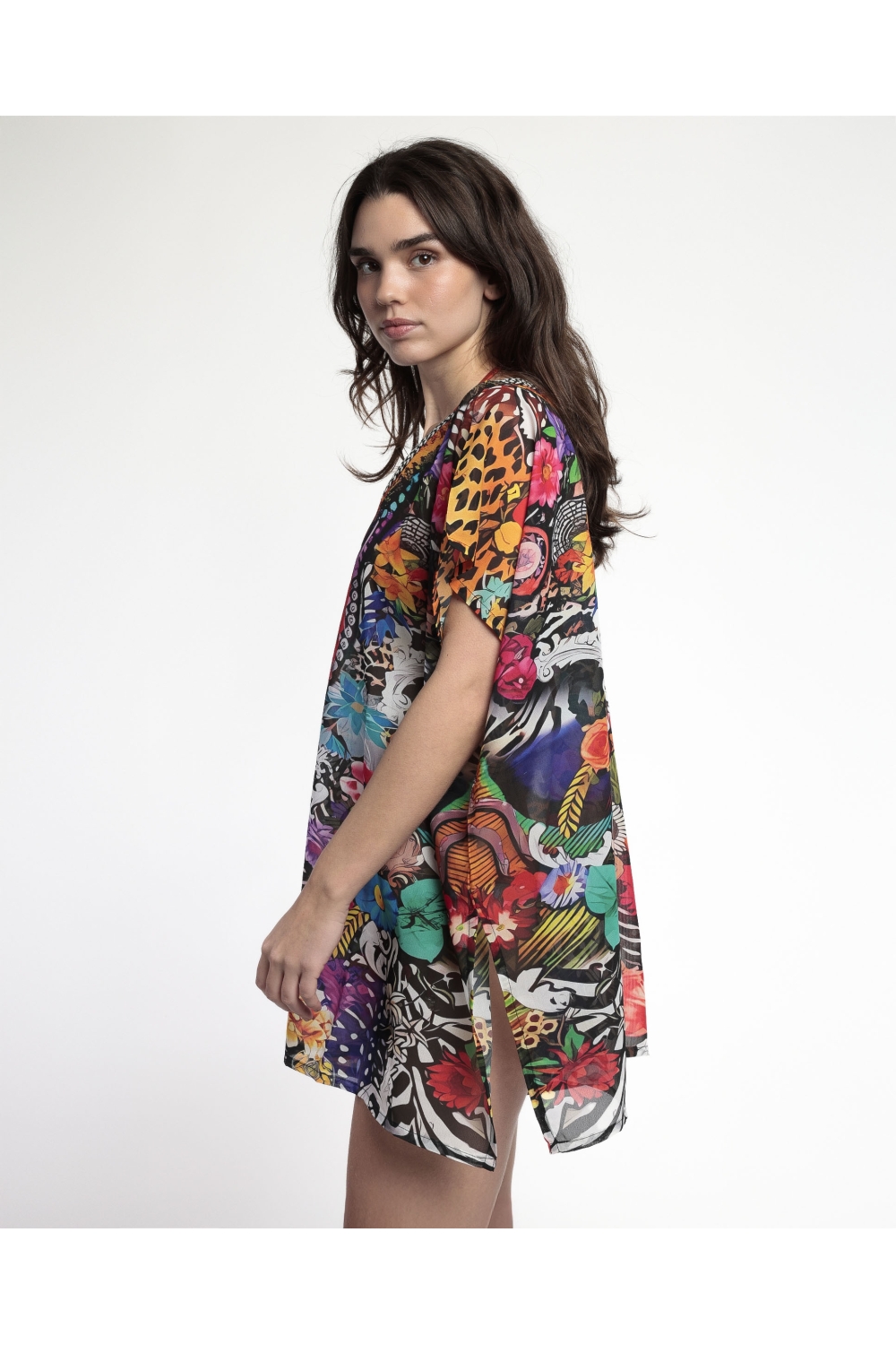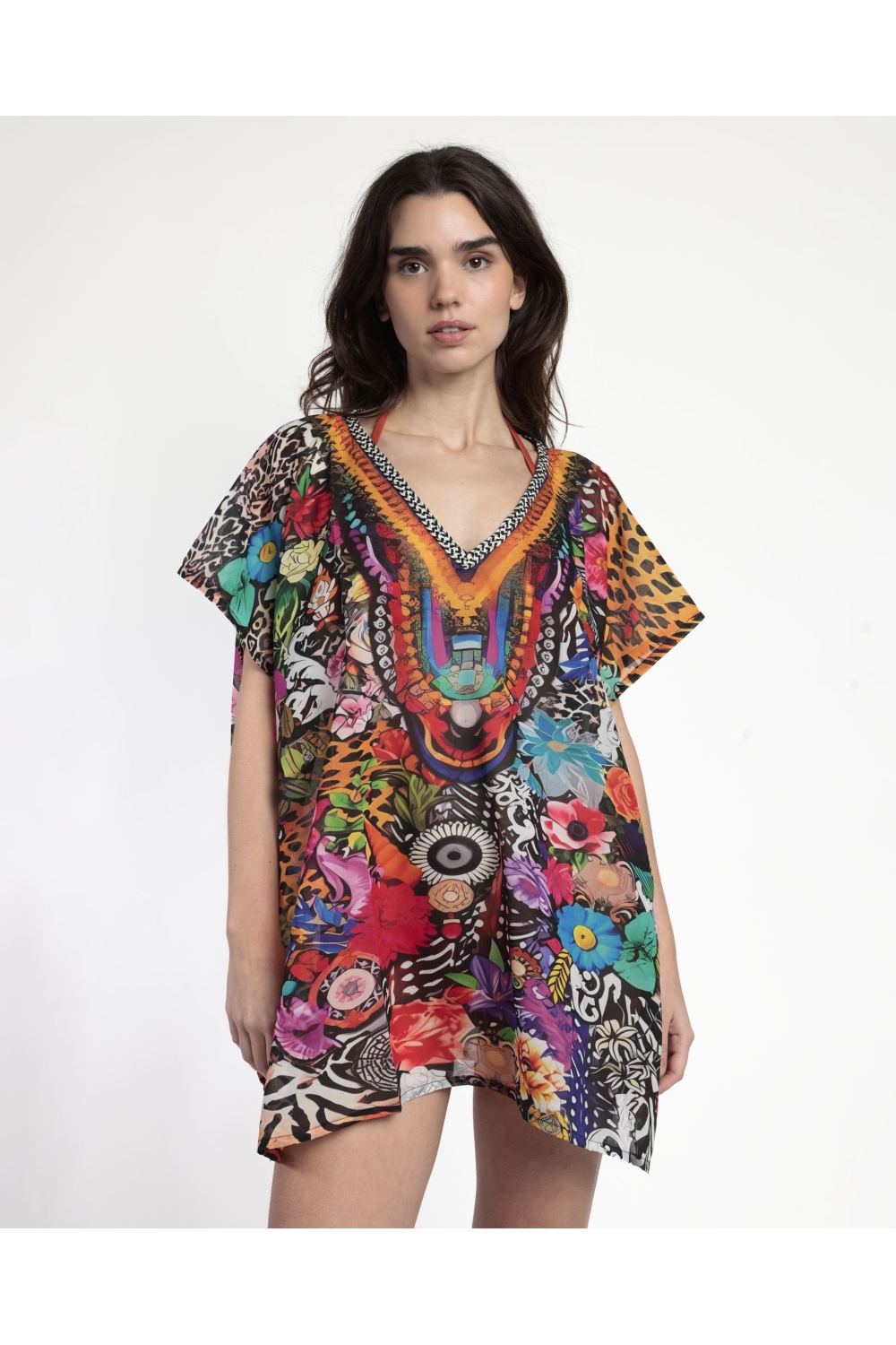 * Vestido de playa para mujer, de cuello pico, de diseño veraniego de flores, multicolor.
