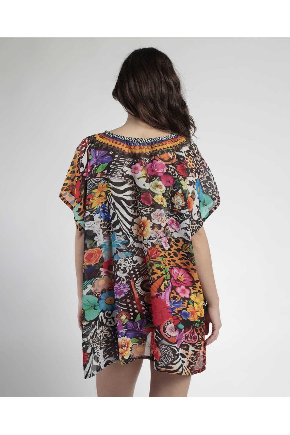 ADMAS Vestido Kaftan Manga Corta Tropical para Mujer
