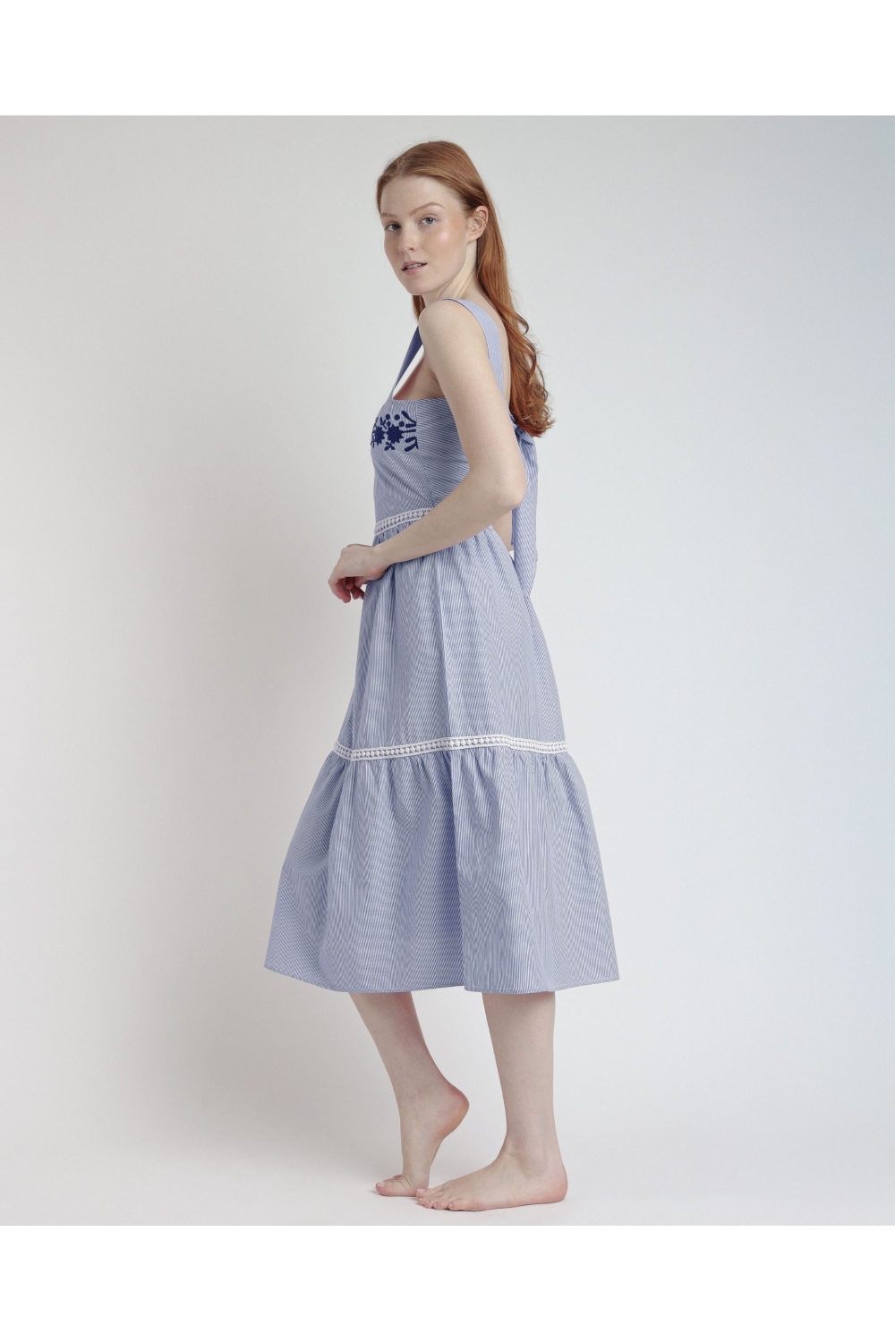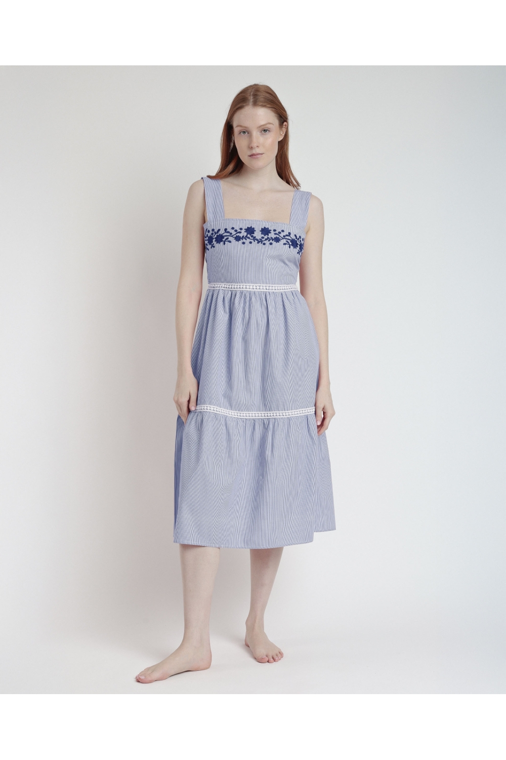 * Vestido para mujer de tela de algodón, con detalles bordados, lo que le da un aire artesano a la prenda.