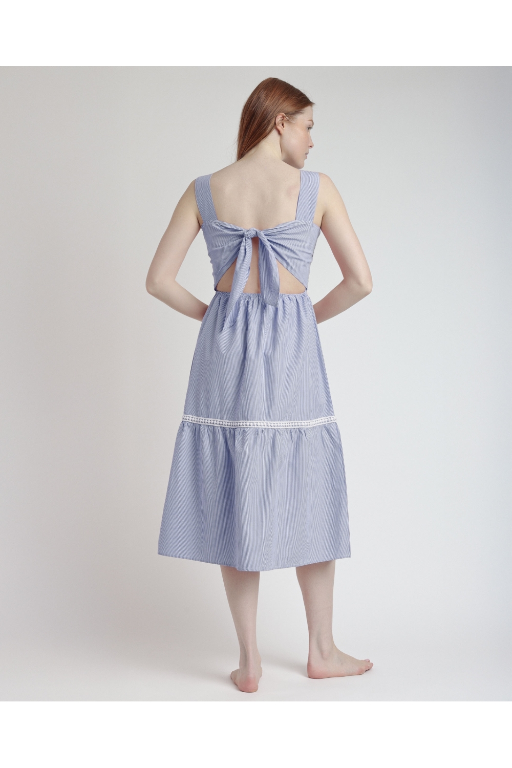 * Es un vestido ideal para las tardes de verano muy sofisticado con detalle de aberturas en espalda y lazada en mismo tejido.