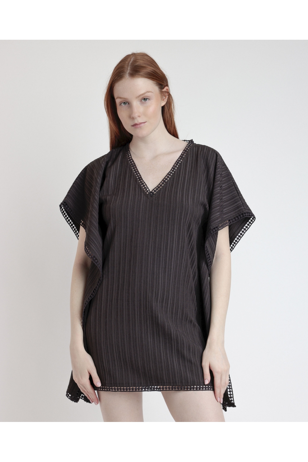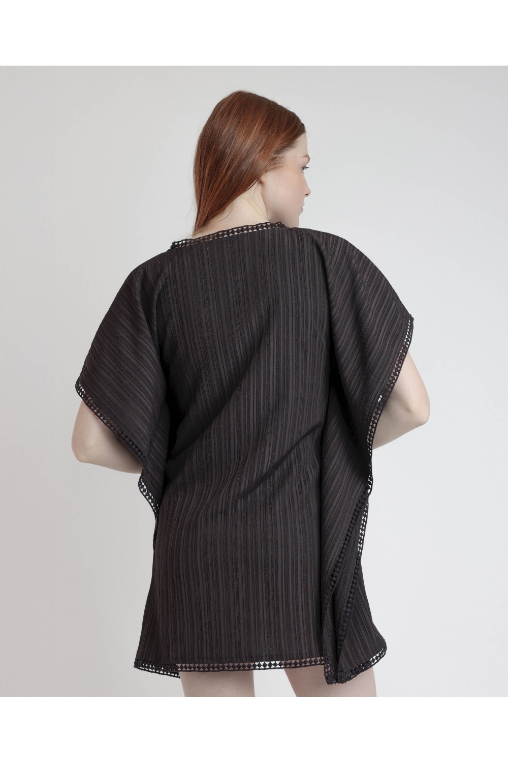 * Es un vestido ideal para las tardes de verano de manga corta, con detalle de abertura en espalda ajustable con cordones, en color negro.