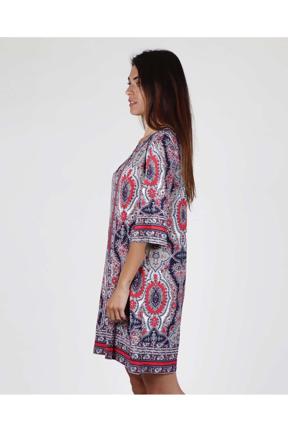 * Vestido para mujer de punto viscosa estampado de estilo étnico en color azul