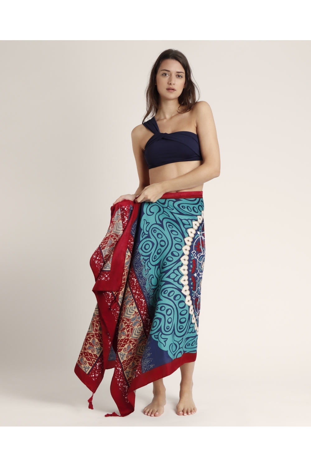 * Pareo de playa confeccionado en poliéster que le aporta suavidad y frescura.