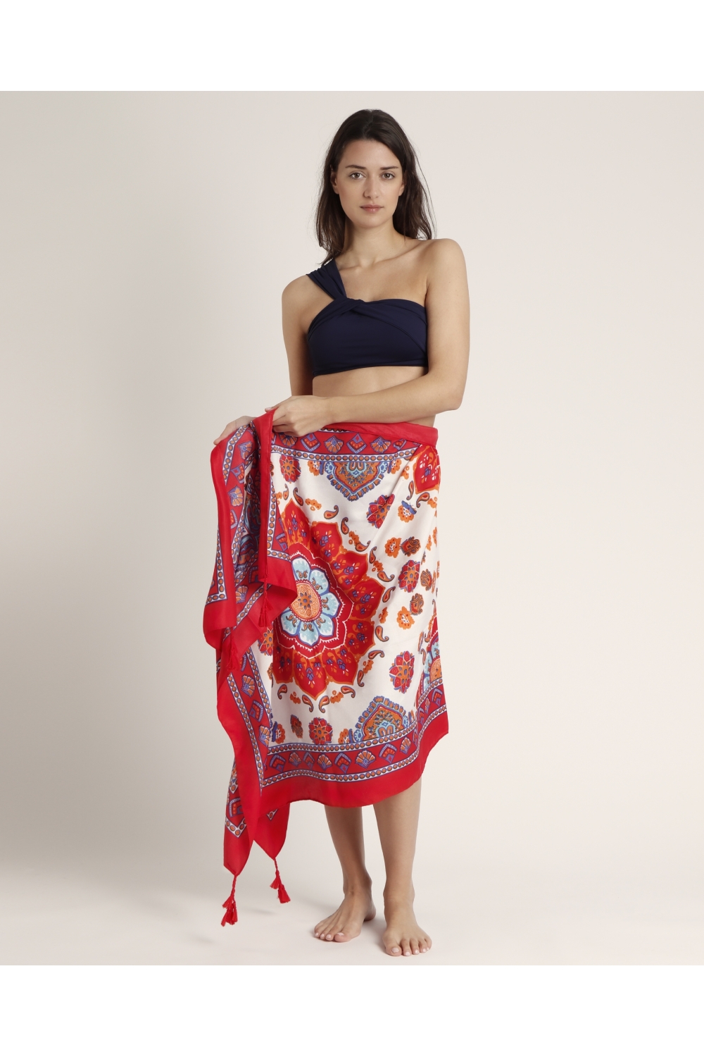 * Pareo de playa confeccionado en poliéster que le aporta suavidad y frescura.