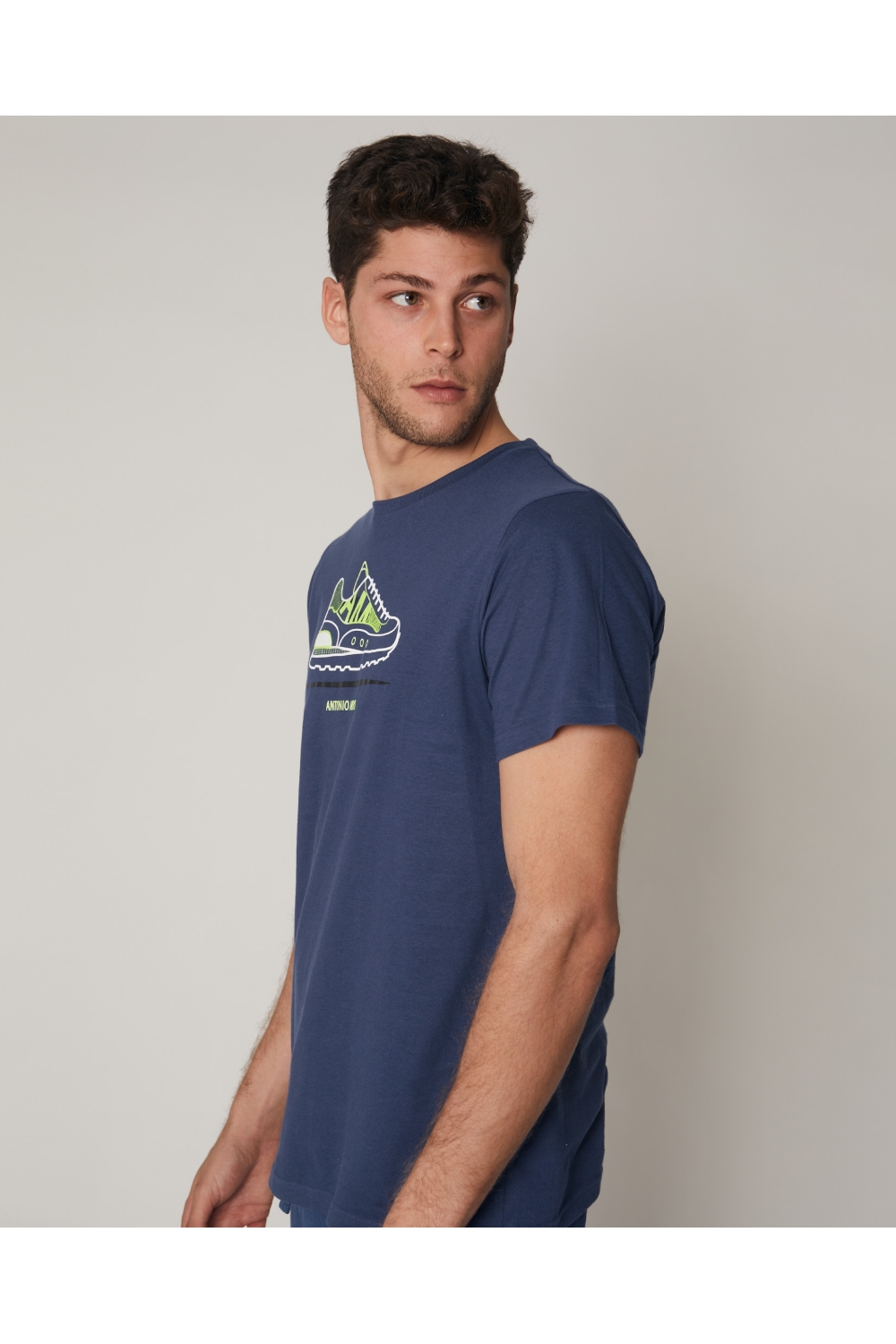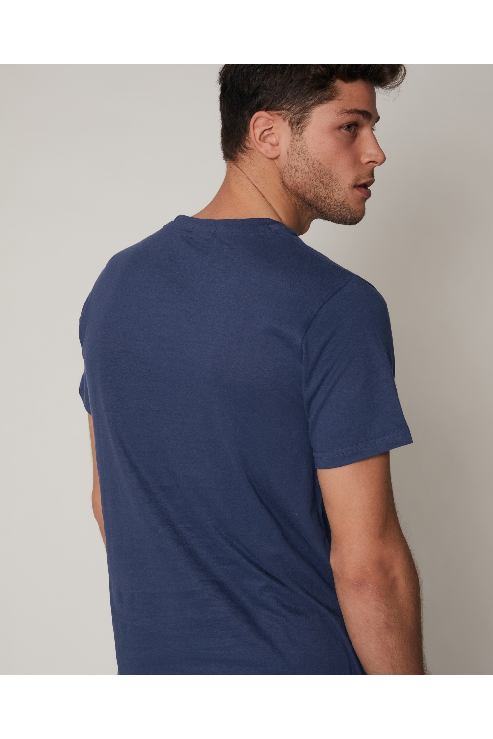 * Camiseta de punto de algodón para hombre de manga corta en color marino con cuello redondo
