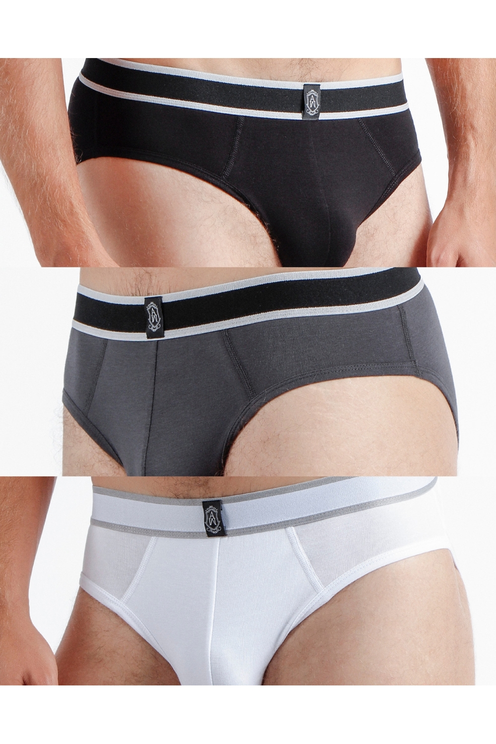 * Calzoncillo/Slip para hombre de algodón elástico en tres combinaciones de color: negro, blanco y gris