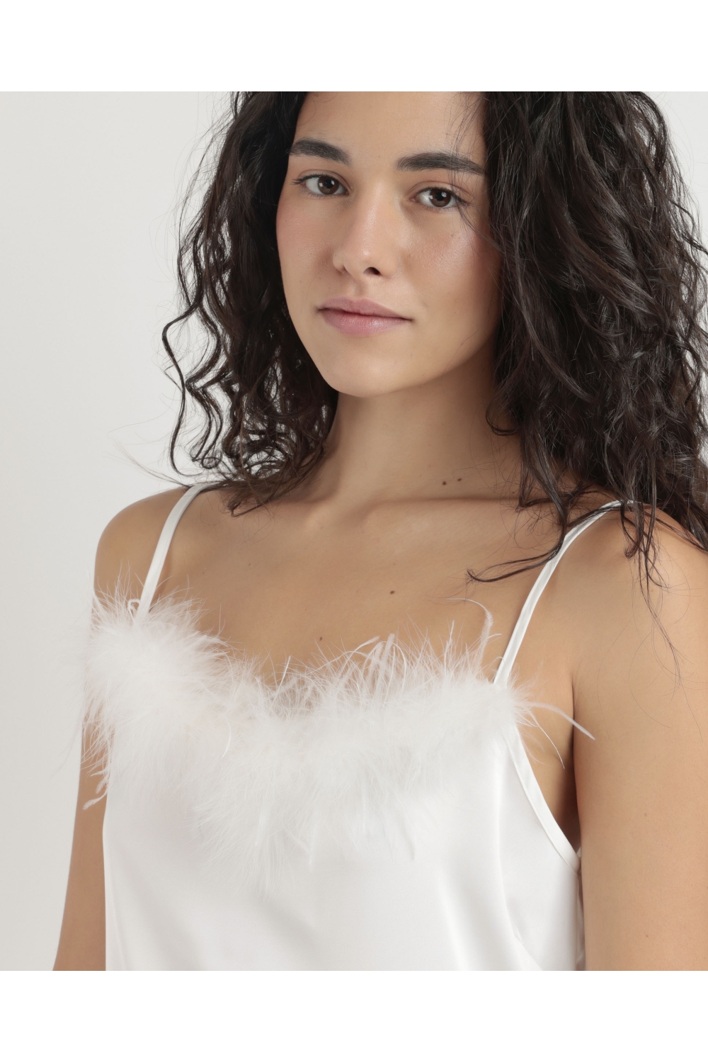 ADMAS LUXURY Pijama Abierto Manga Larga Plumas Marabu Luxe para Mujer BLANCO