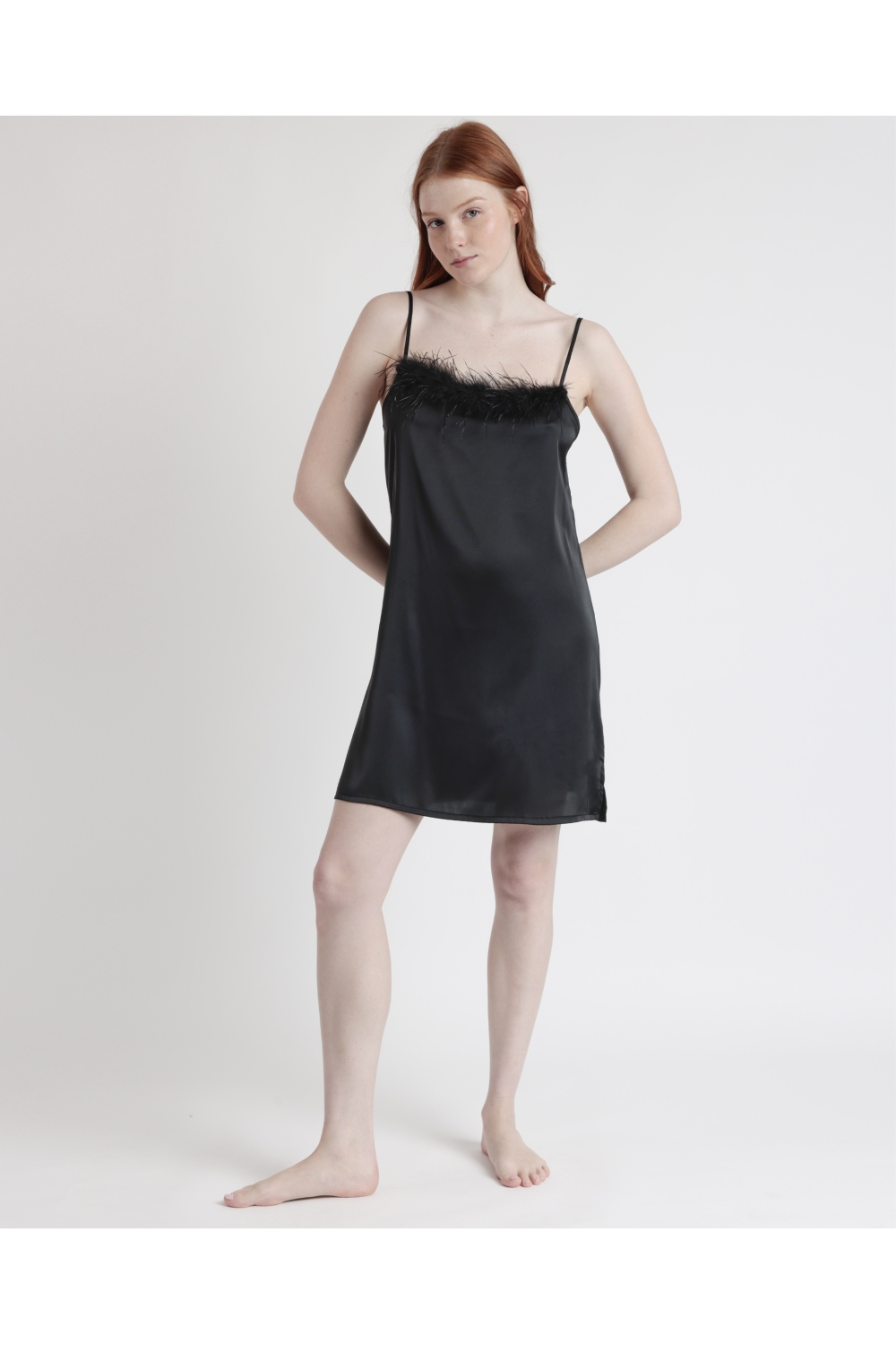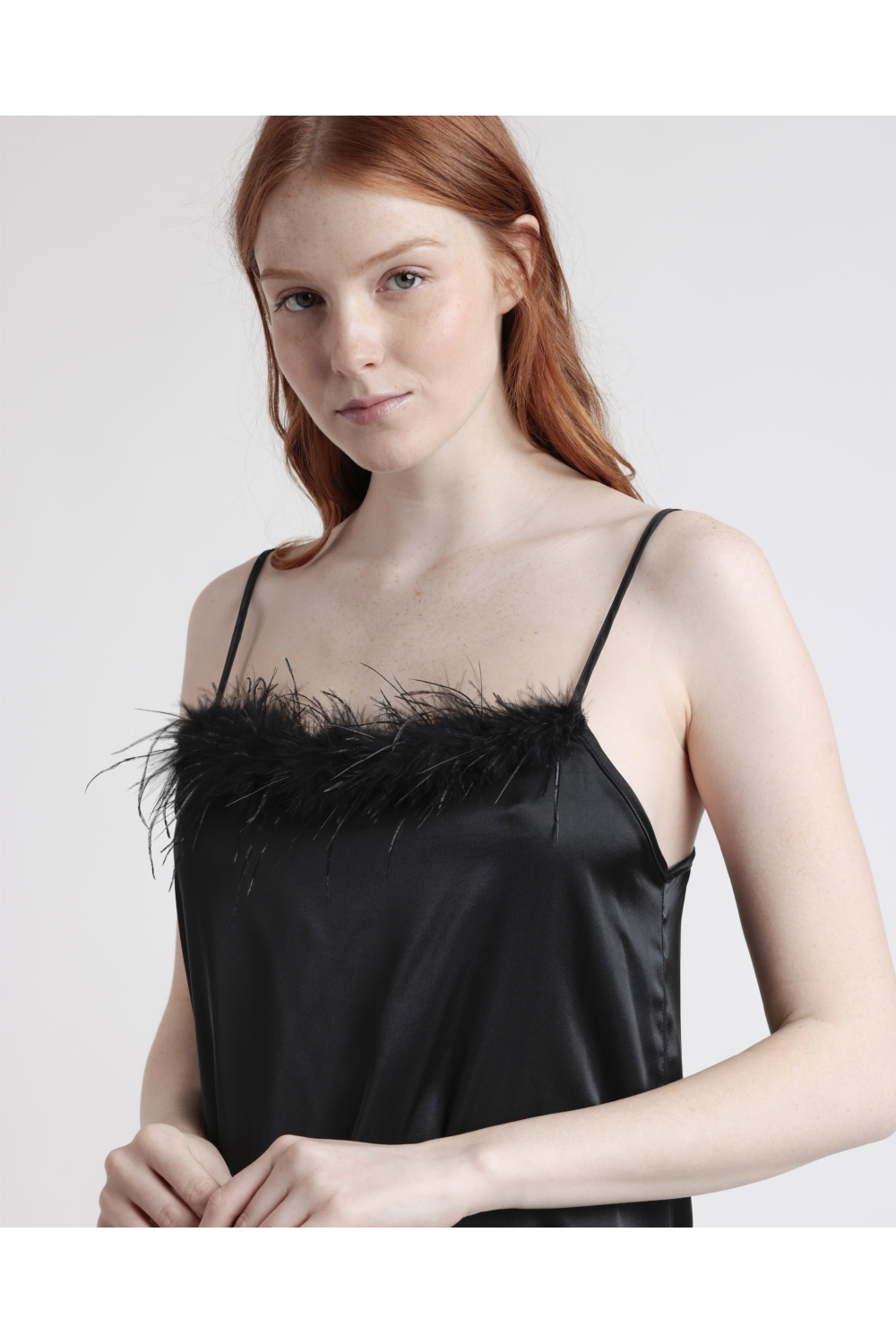 * Camisola con detalles de plumas removibles.
