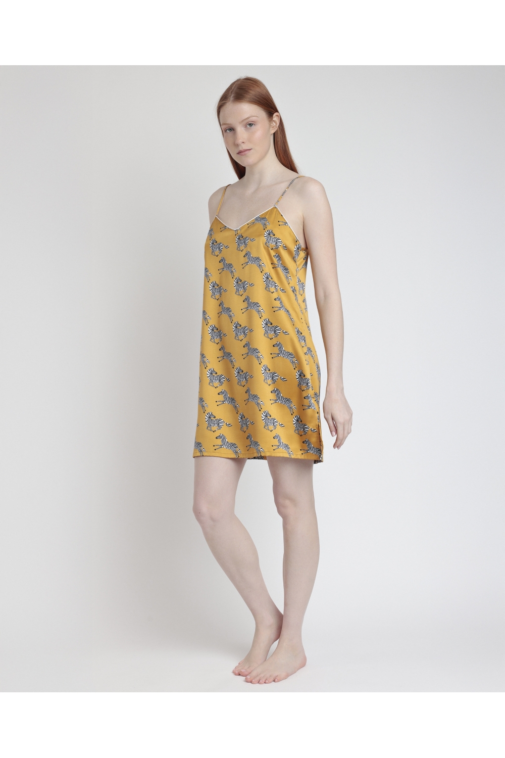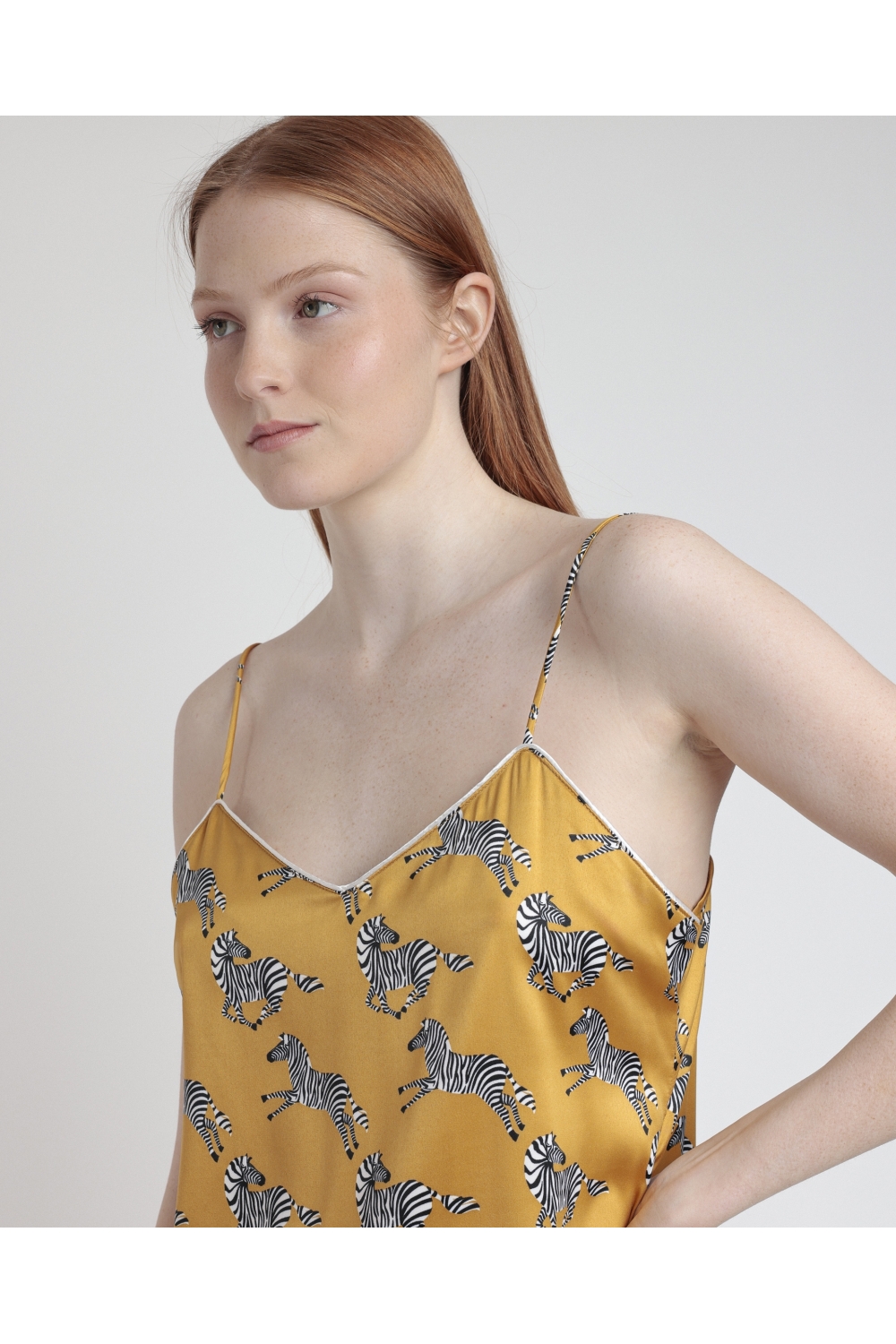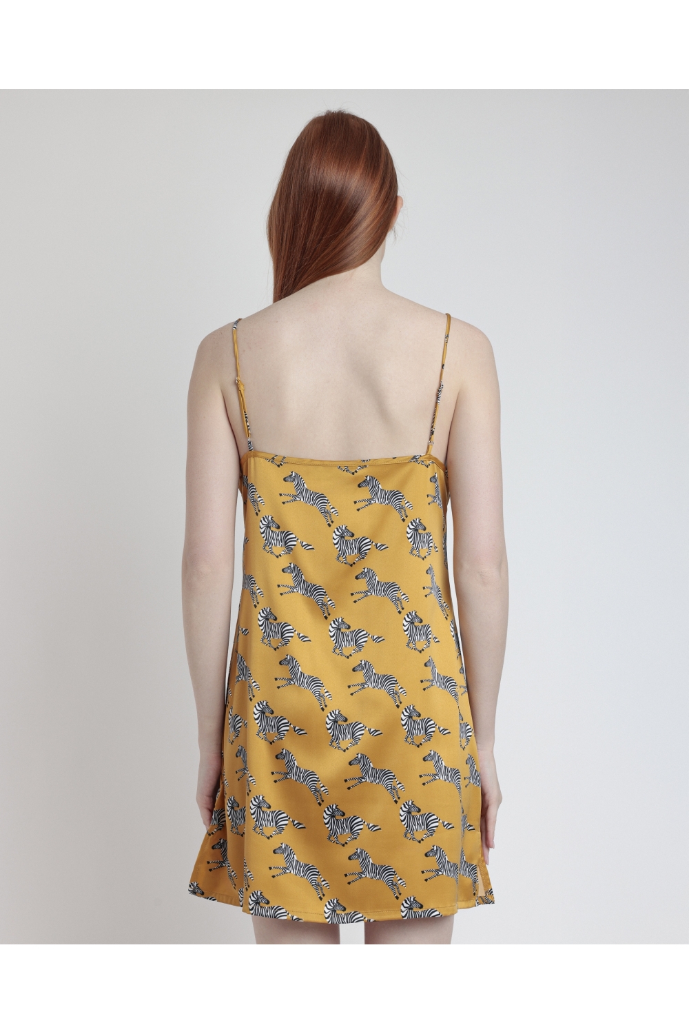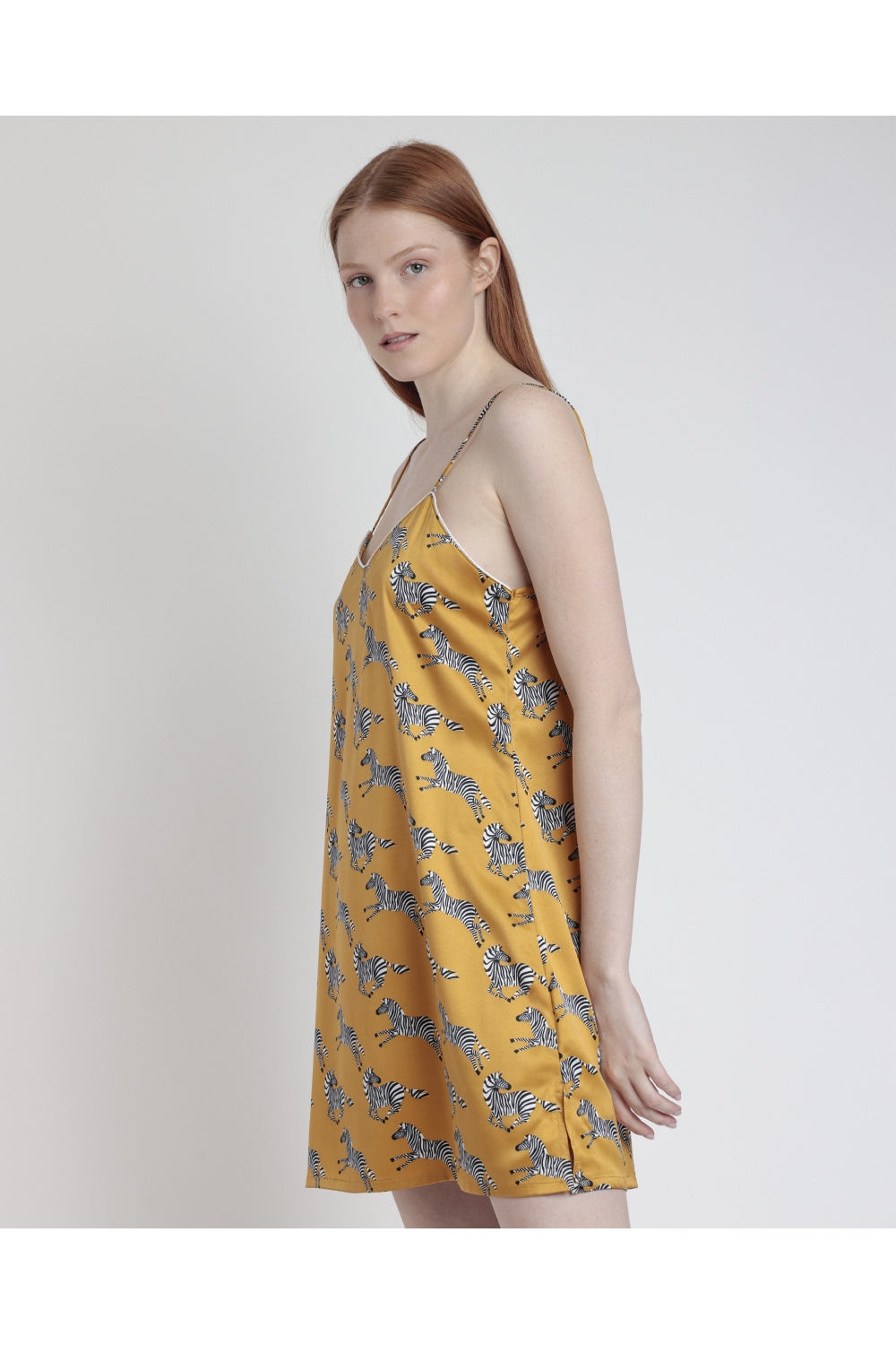 ADMAS LUXURY Pijama Abierto Manga Corta Zebra Gold para Mujer OCRE