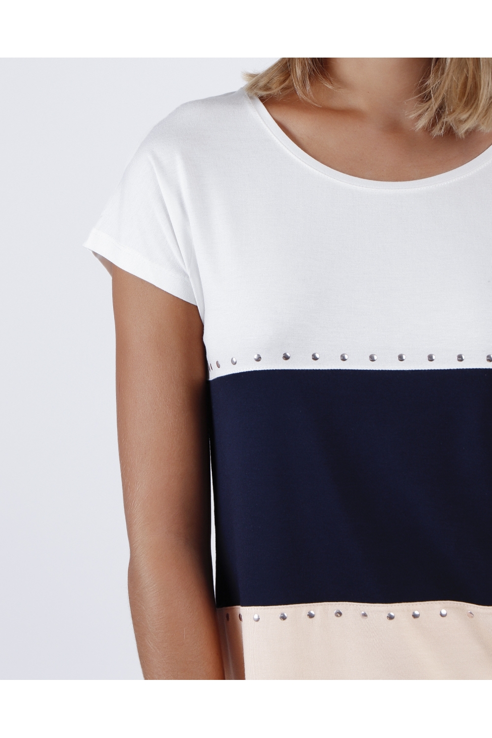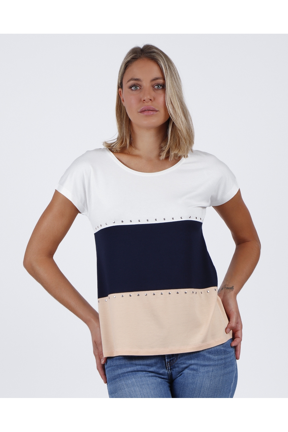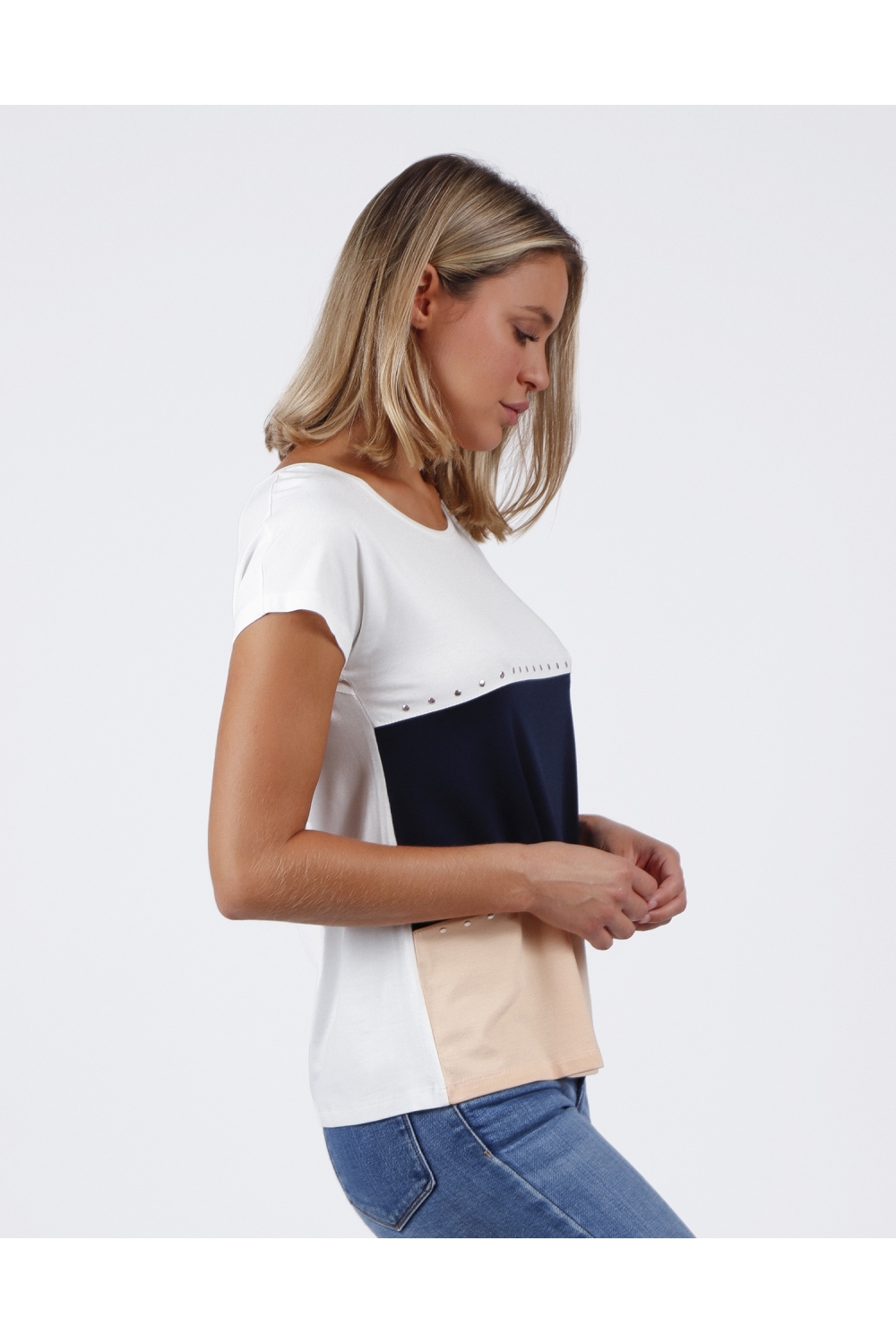 * Camiseta de punto liso, con detalles de tachuelas, personalizada de la marca Admas.