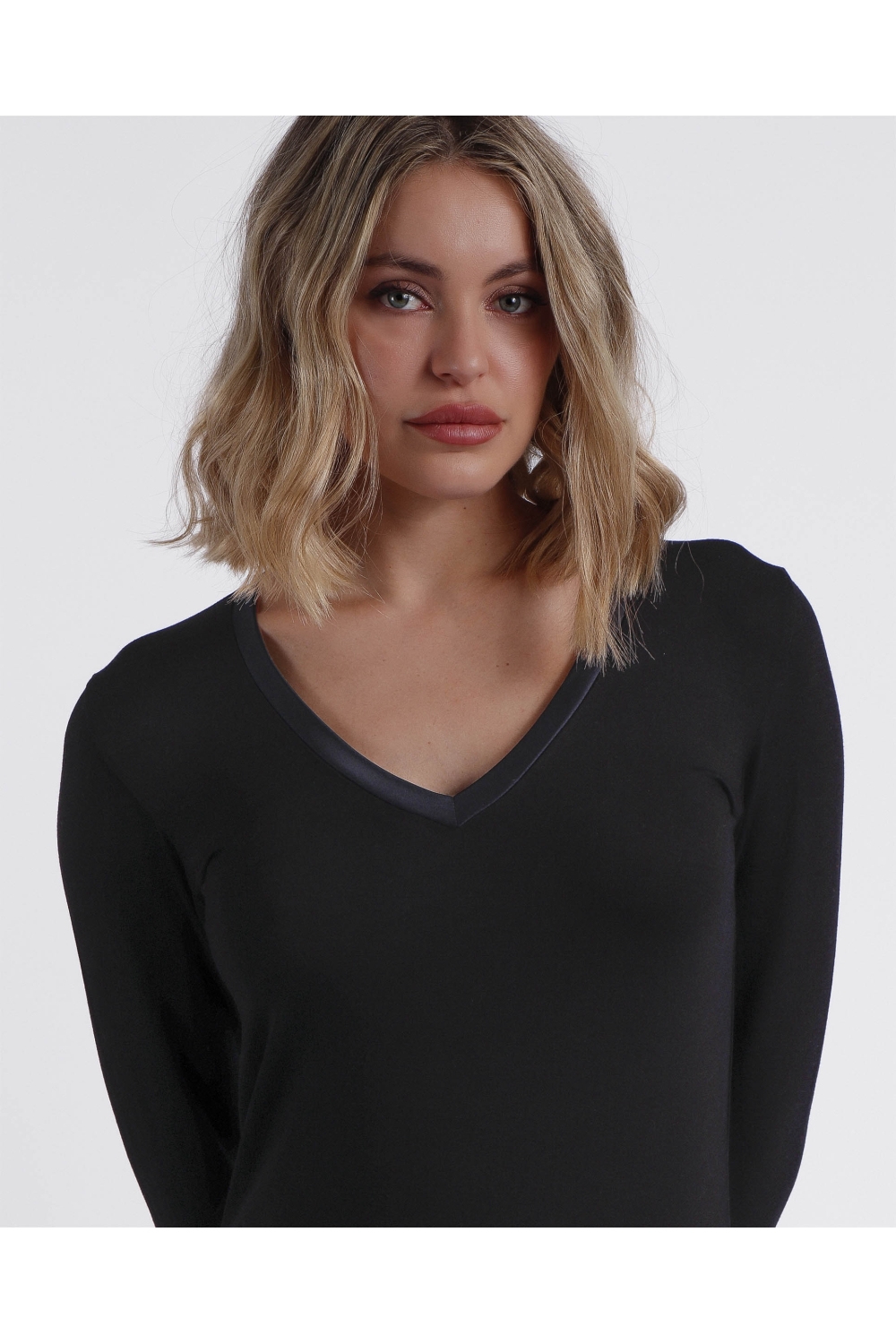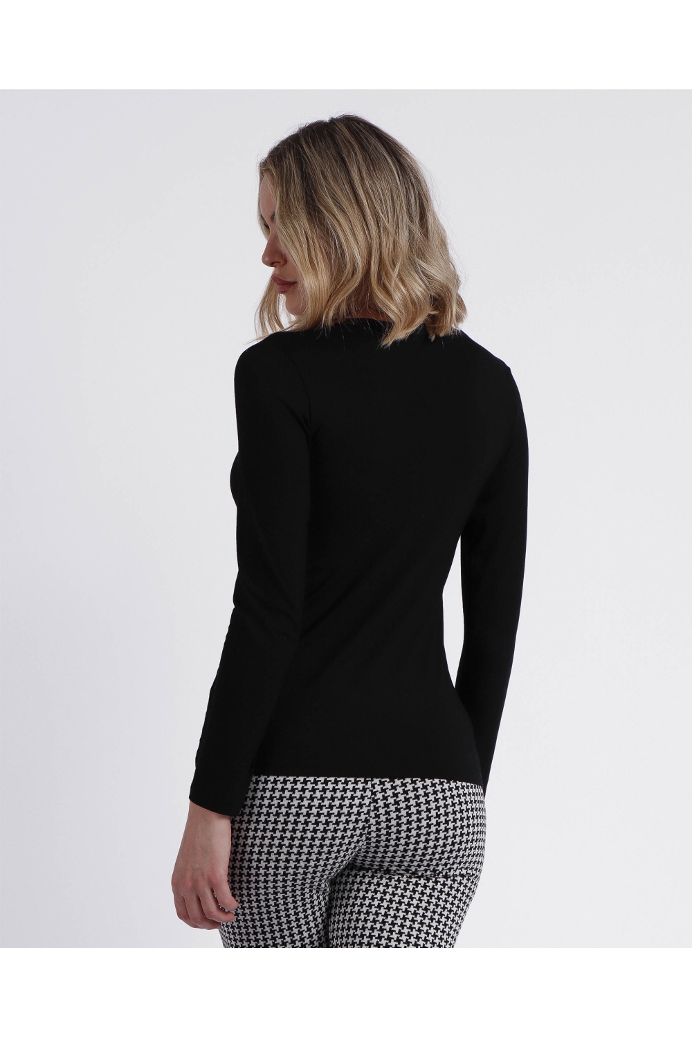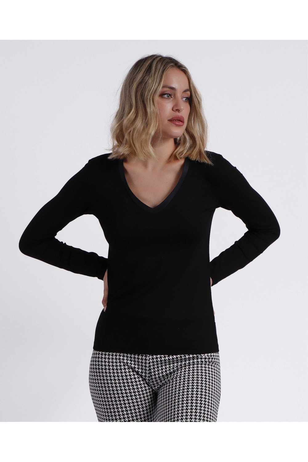 ADMAS Camiseta Manga Corta Cenefa Brillante para Mujer NEGRO