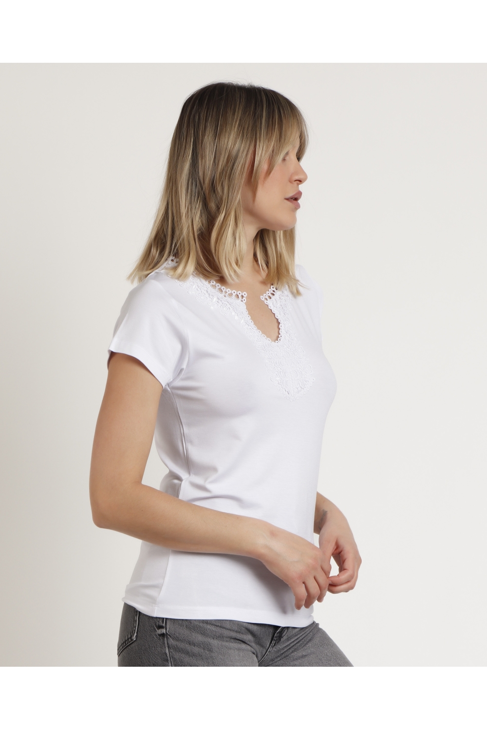 ADMAS Camiseta Manga Corta Guipur para Mujer