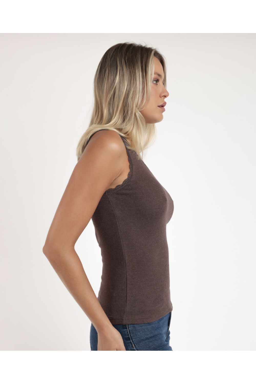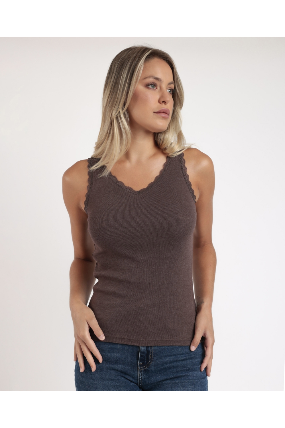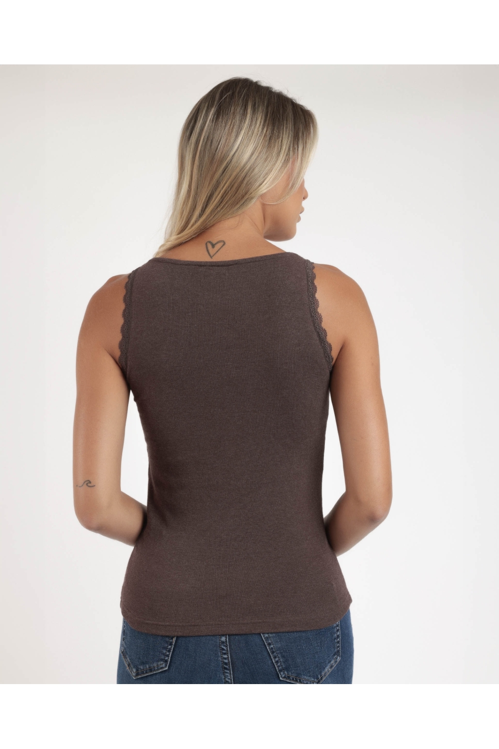 ADMAS Camiseta Sin Mangas Romantic Rib para Mujer CHOCOLATE