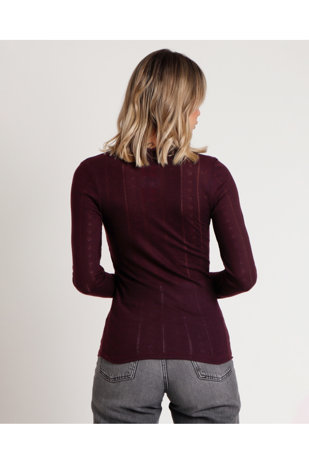 ADMAS Camiseta Manga Larga Canalé para Mujer BERENJENA