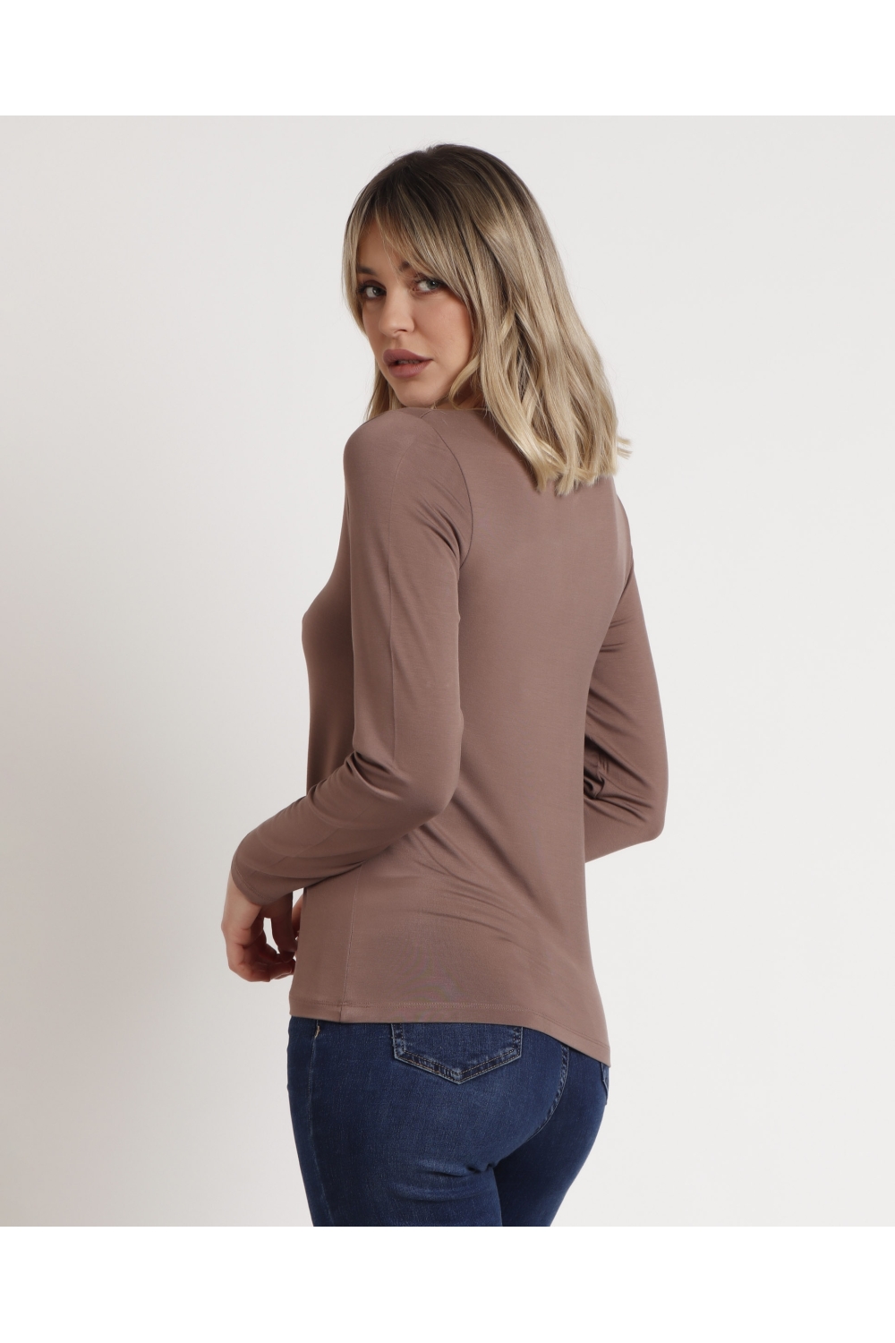 ADMAS Camiseta Manga Larga Pico Raso para Mujer VISON