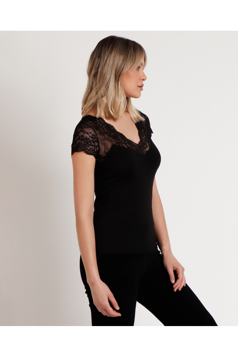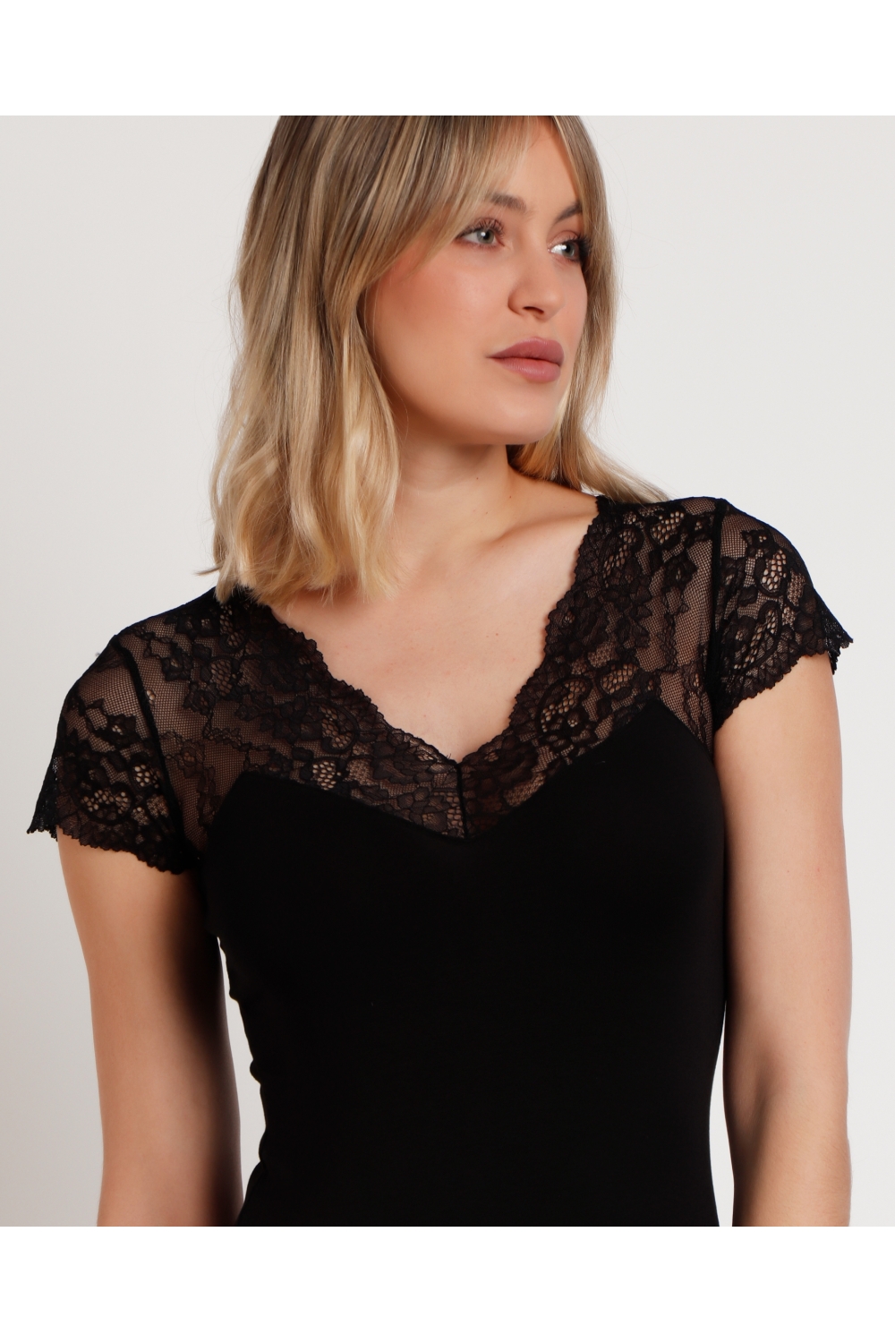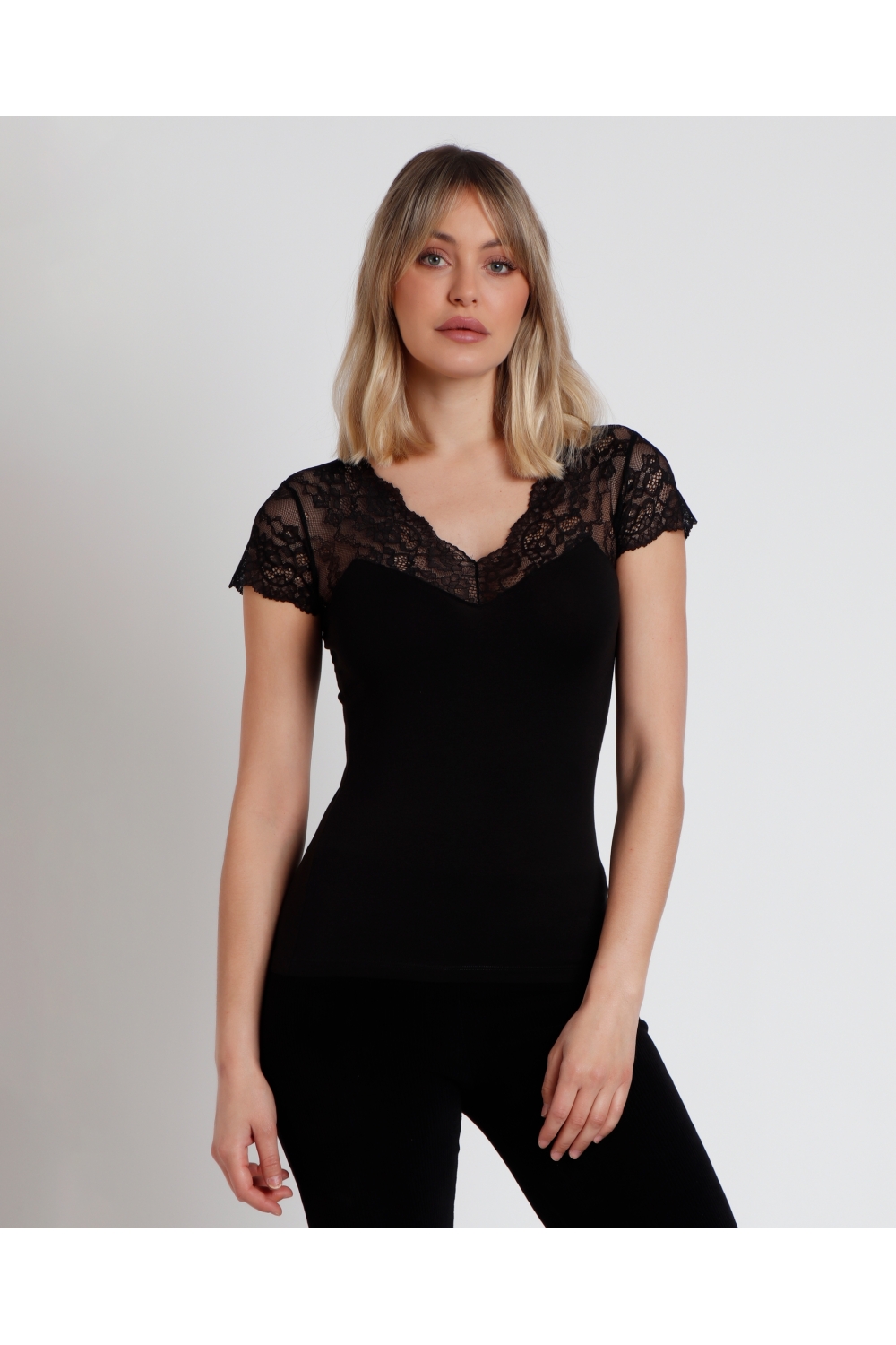 * Camiseta de punto, con detalles de puntilla lencera, personalizada de la marca Admas.