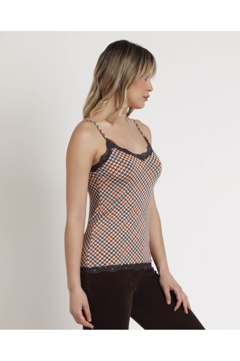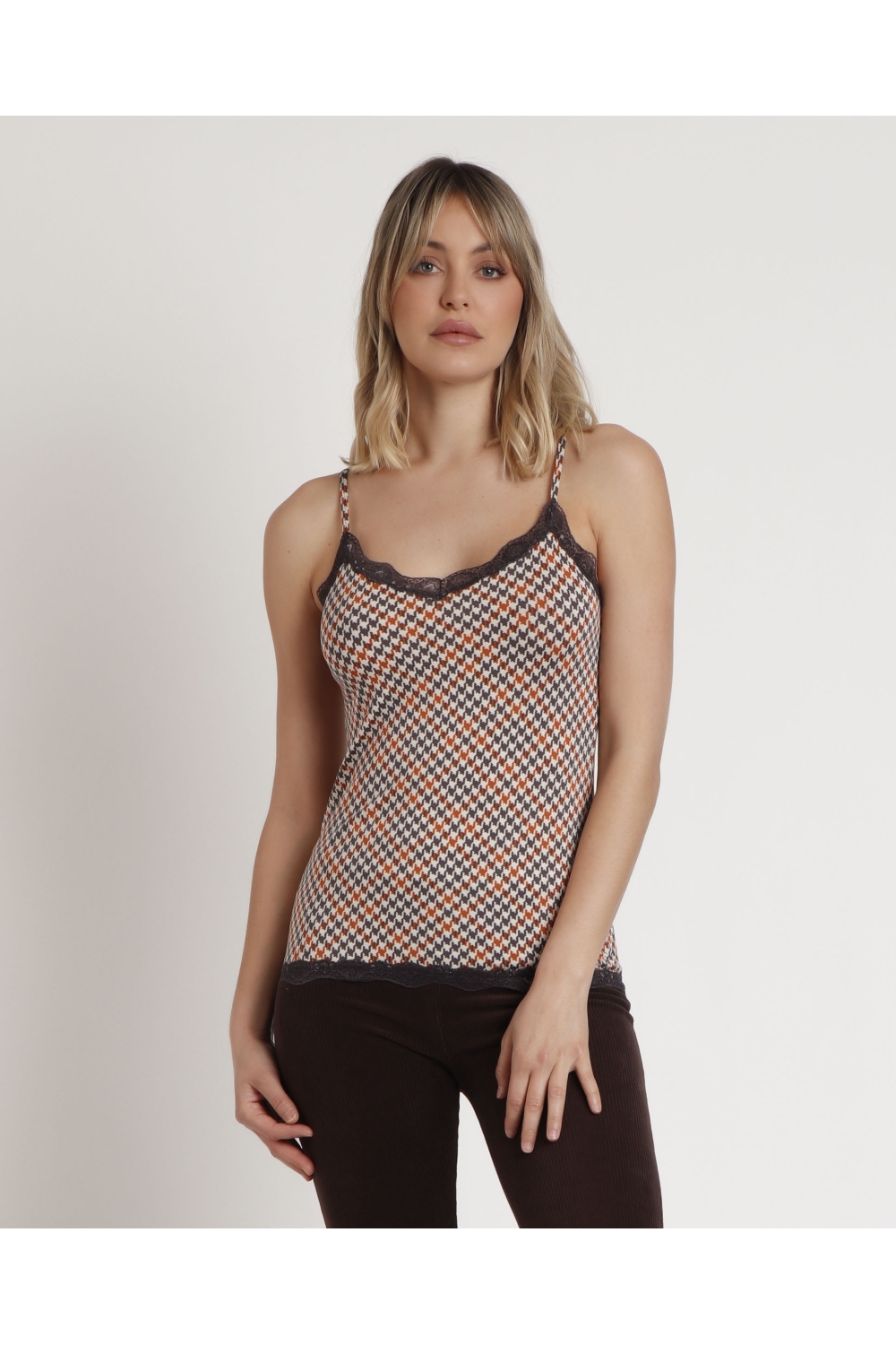 ADMAS Camiseta Sin Mangas Escote Guipur para Mujer AMARILLO