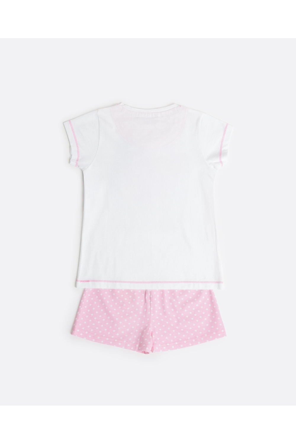 * Pijama de punto de algodón, de manga corta, cuello redondo y pantalón corto.