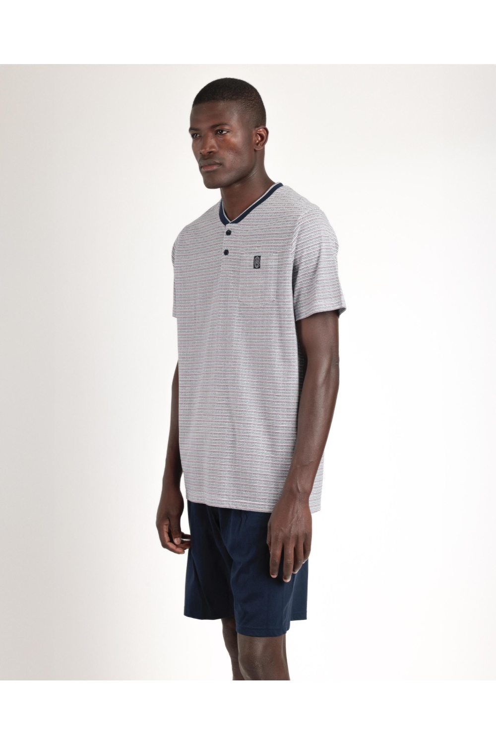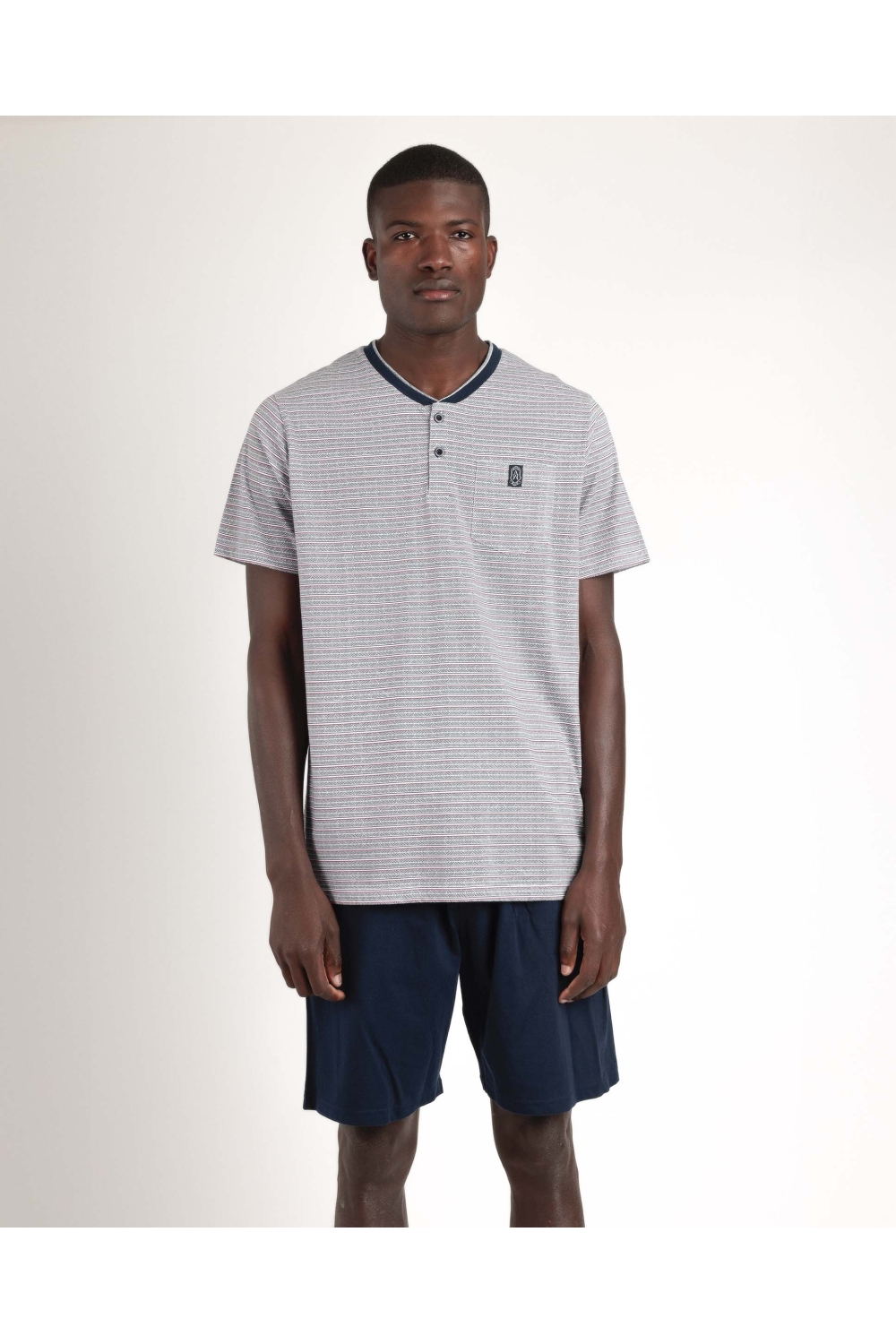 ADMAS CLASSIC Pijama Abierto Manga Corta Espiga para Hombre AZUL