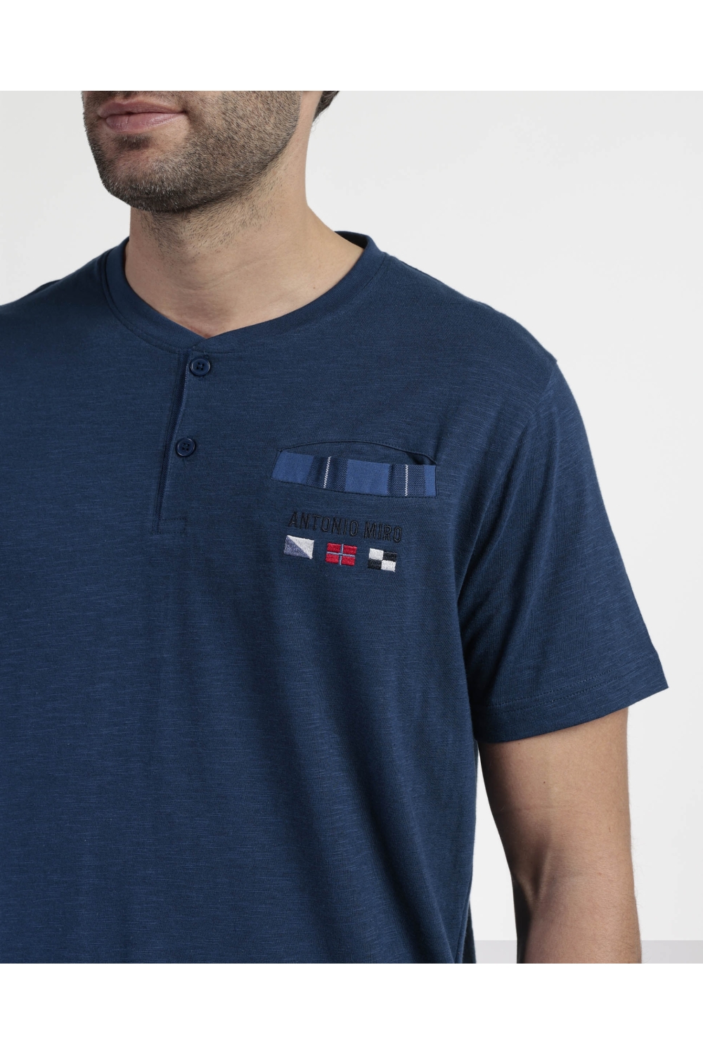 ANTONIO MIRO Pijama Abierto Manga Corta Marine Flags para Hombre AZUL