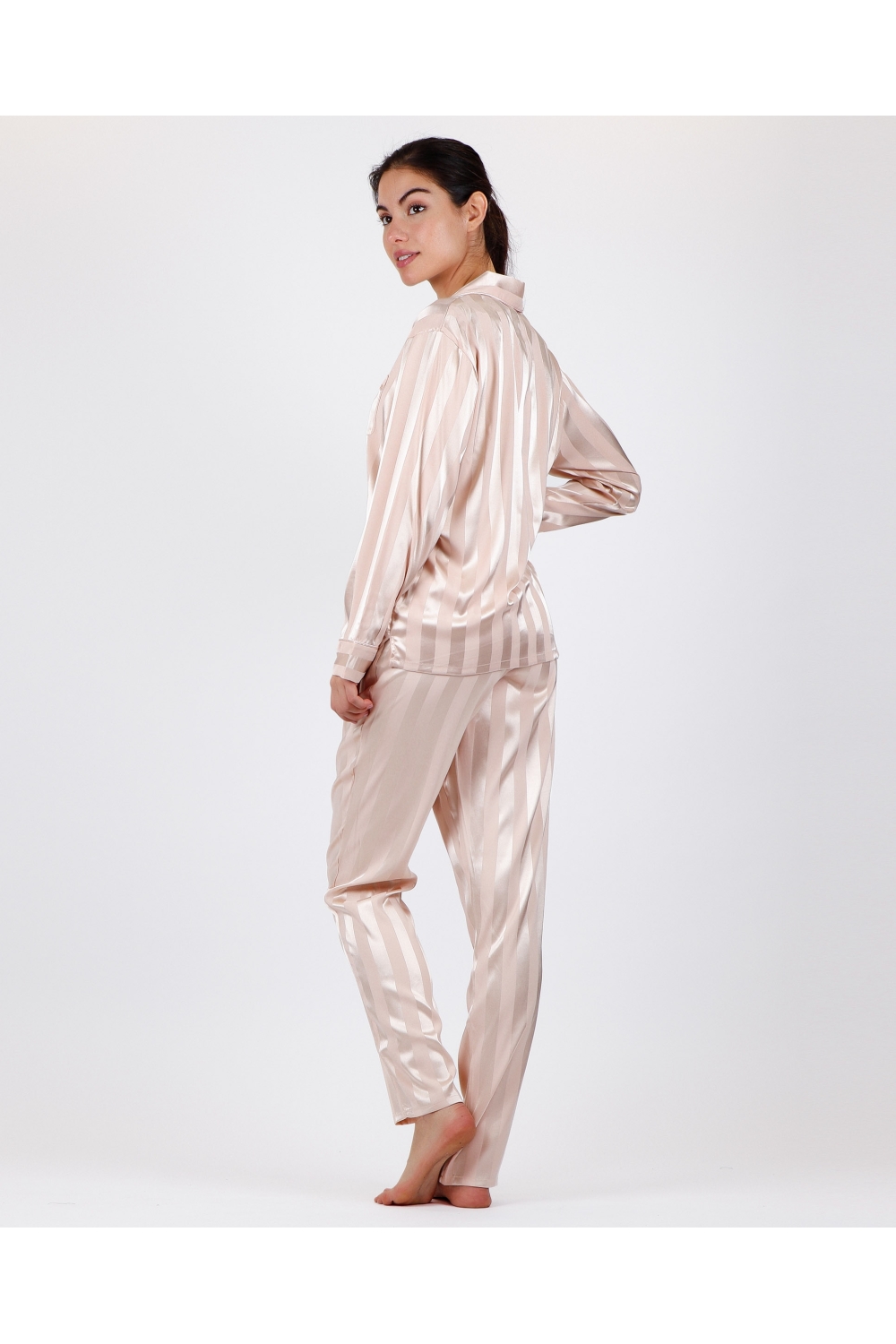 ADMAS CLASSIC Pijama Novia Abierto Manga Larga Satin Stripes para Mujer NUDE