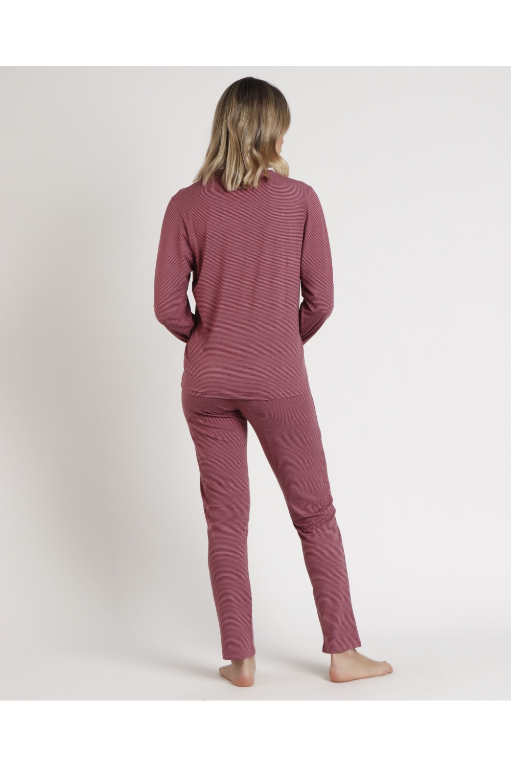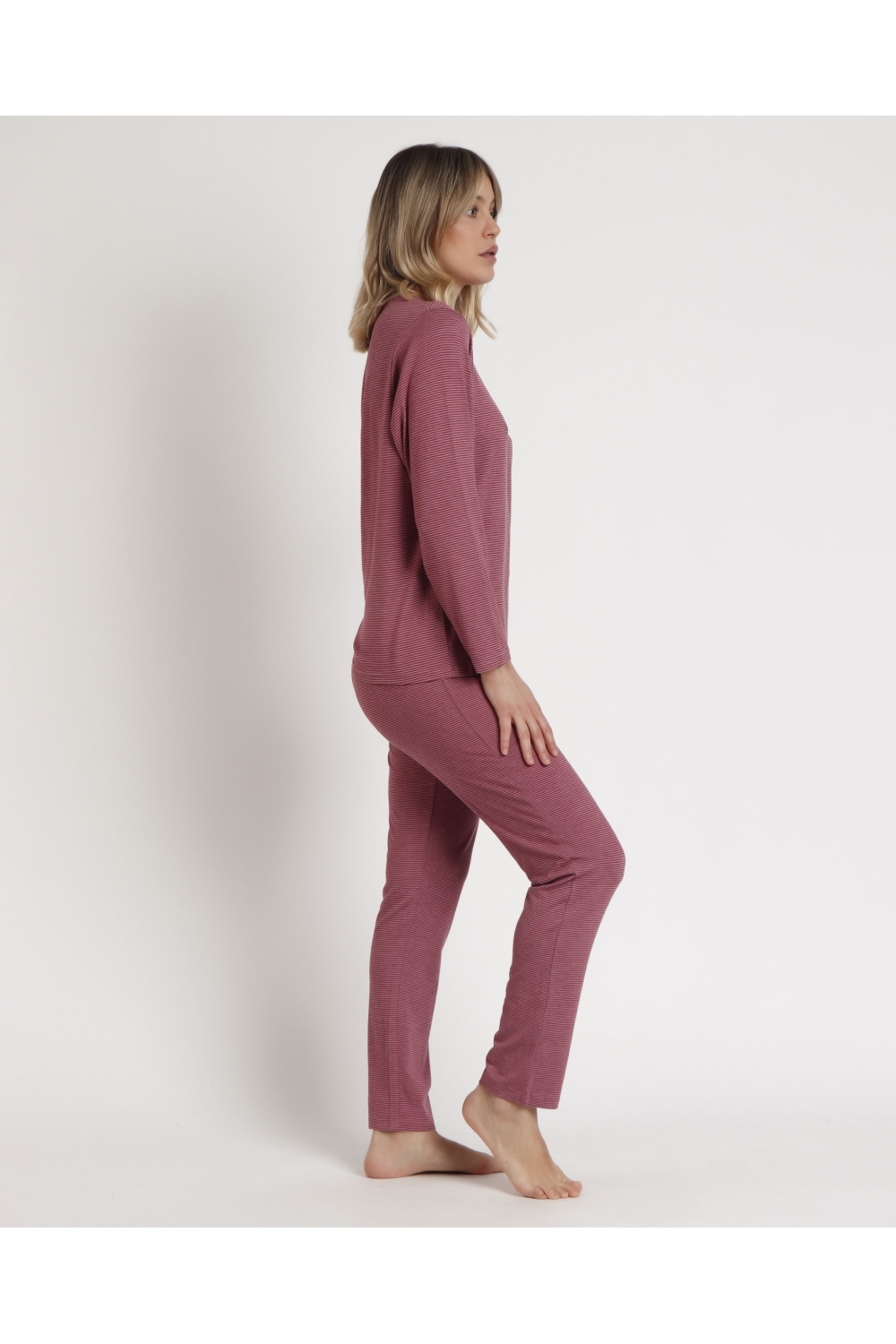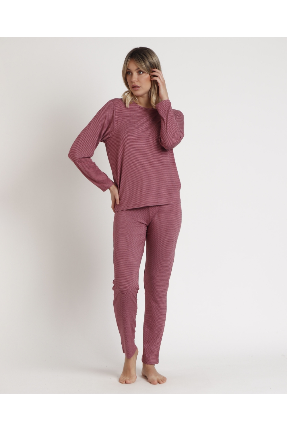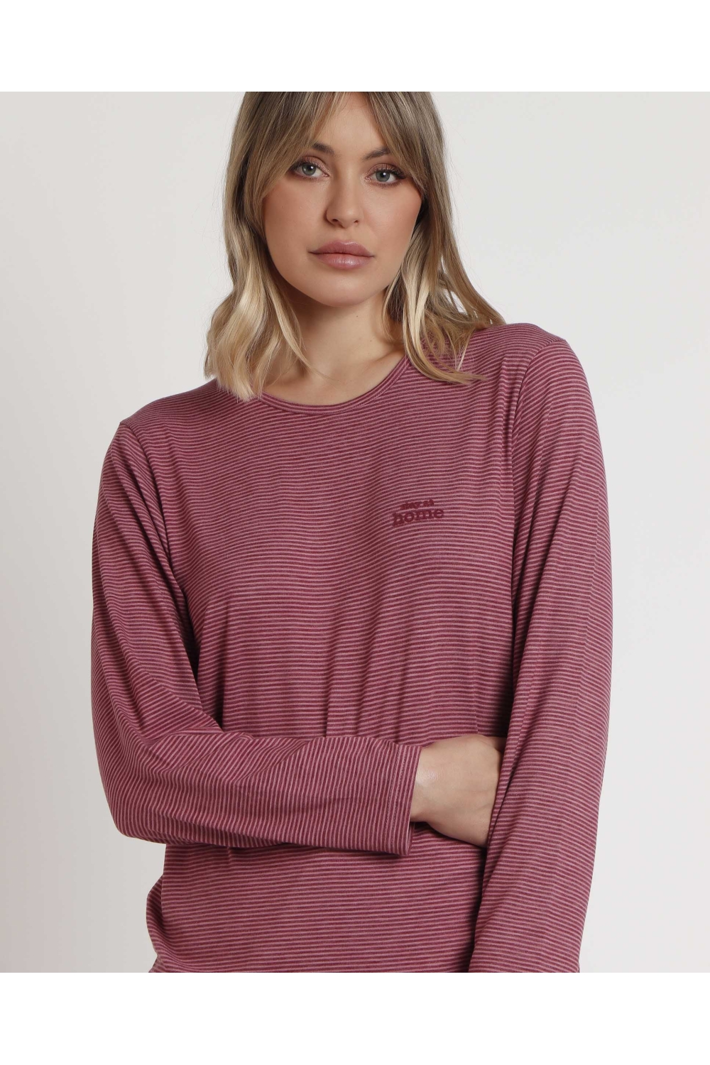 STAY AT HOME Camisola Manga Larga Soft Stripes para Mujer FRAMBUESA