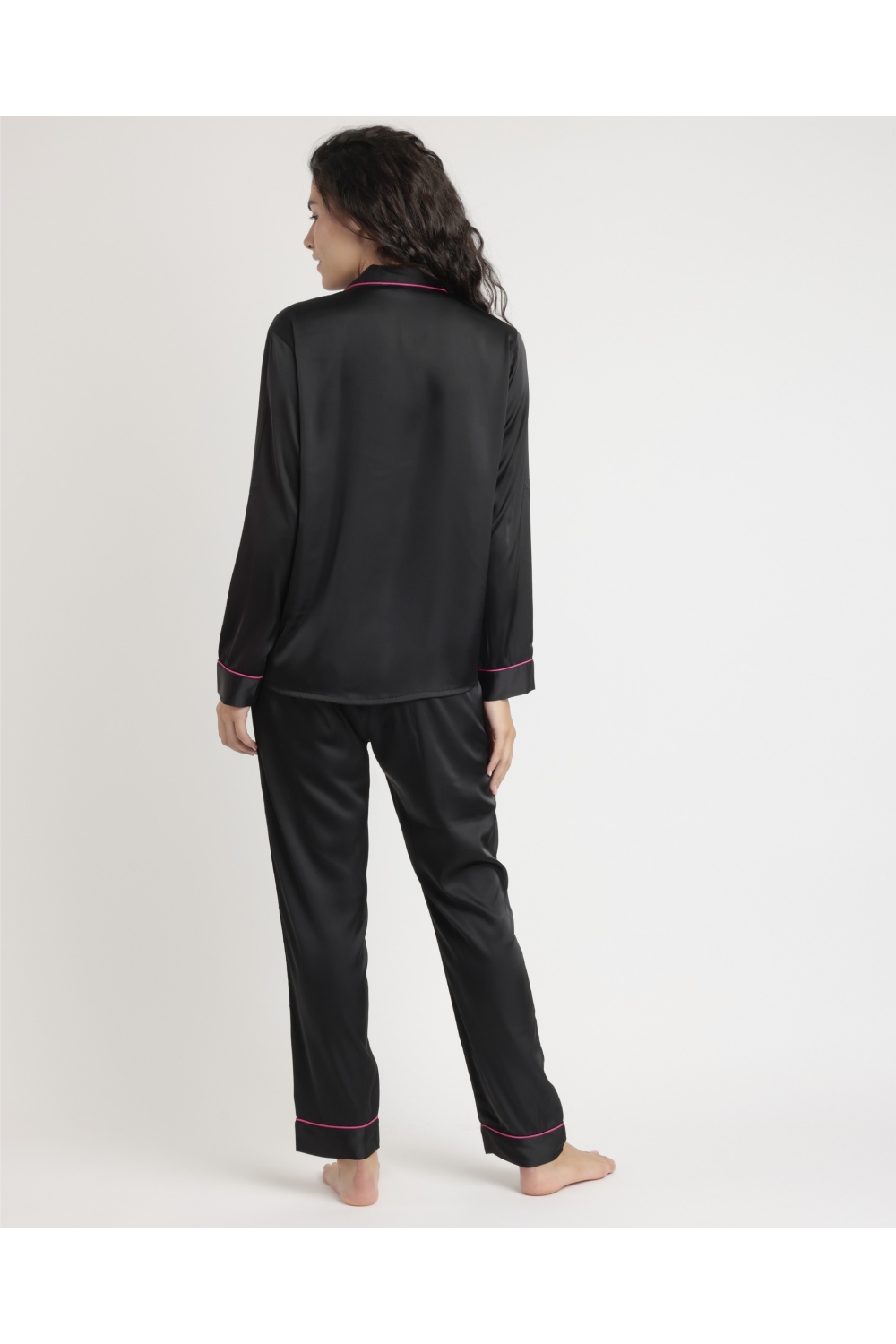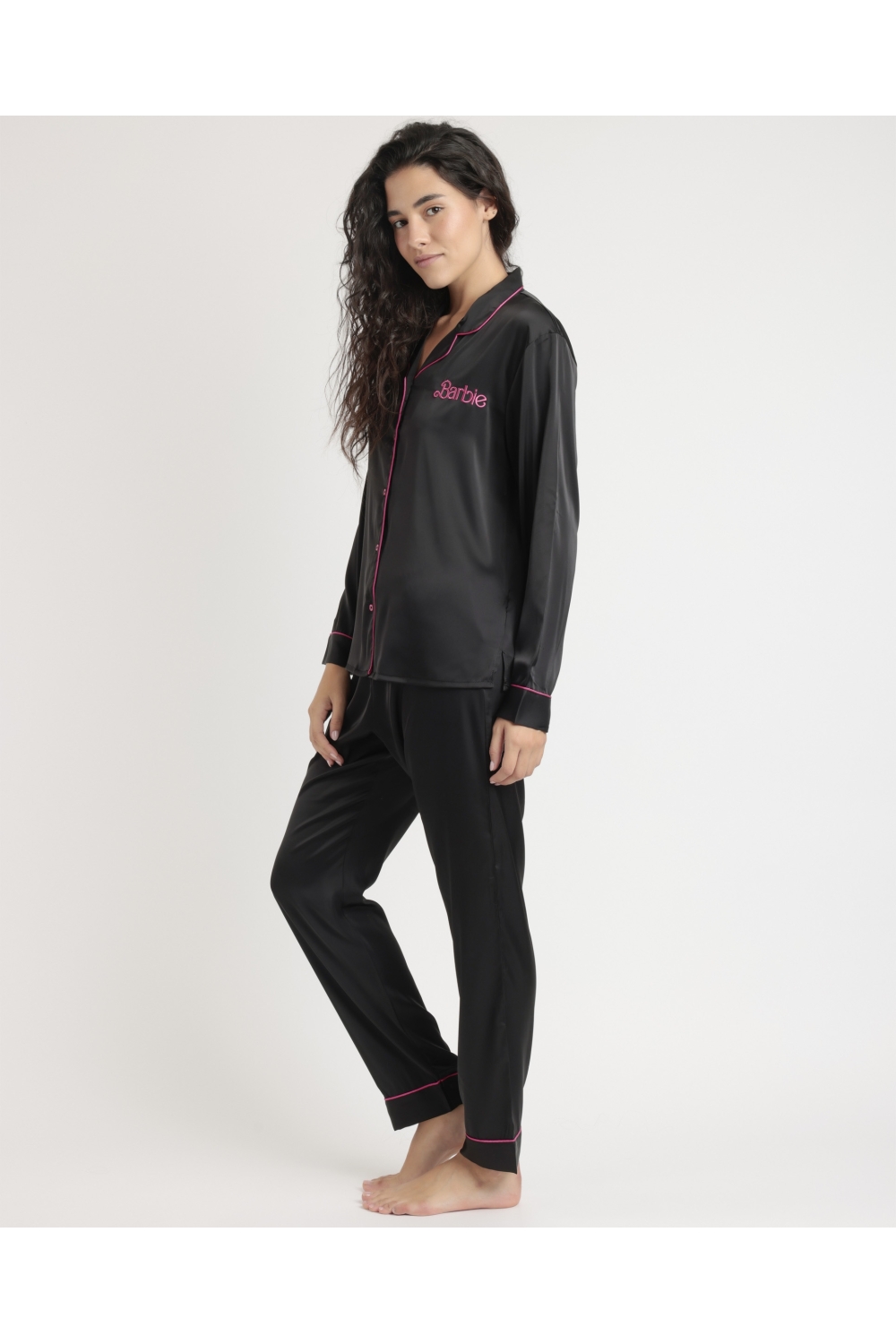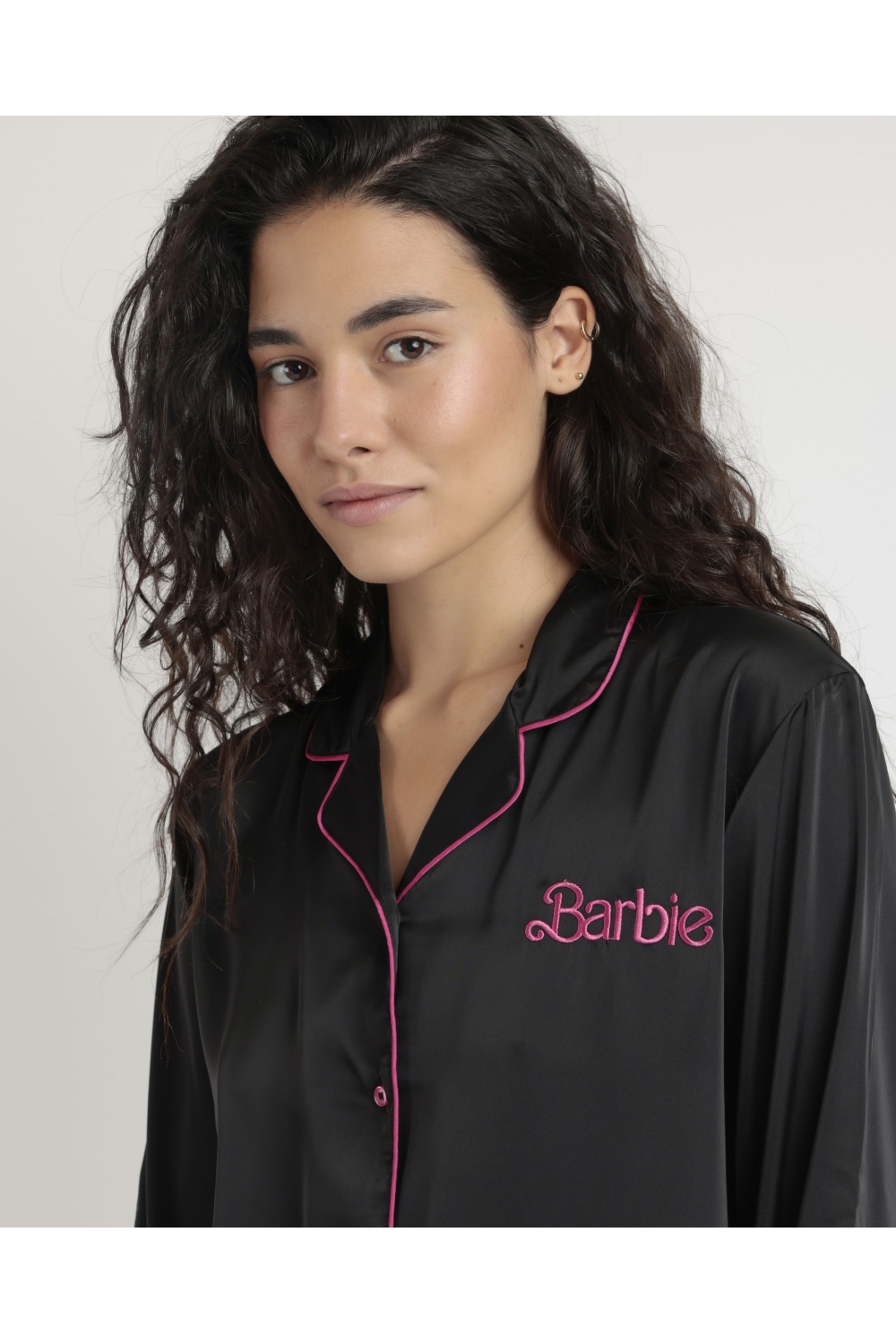 BARBIE Pijama Abierto Manga Larga Satin Barbie Vintage para Mujer FUCSIA
