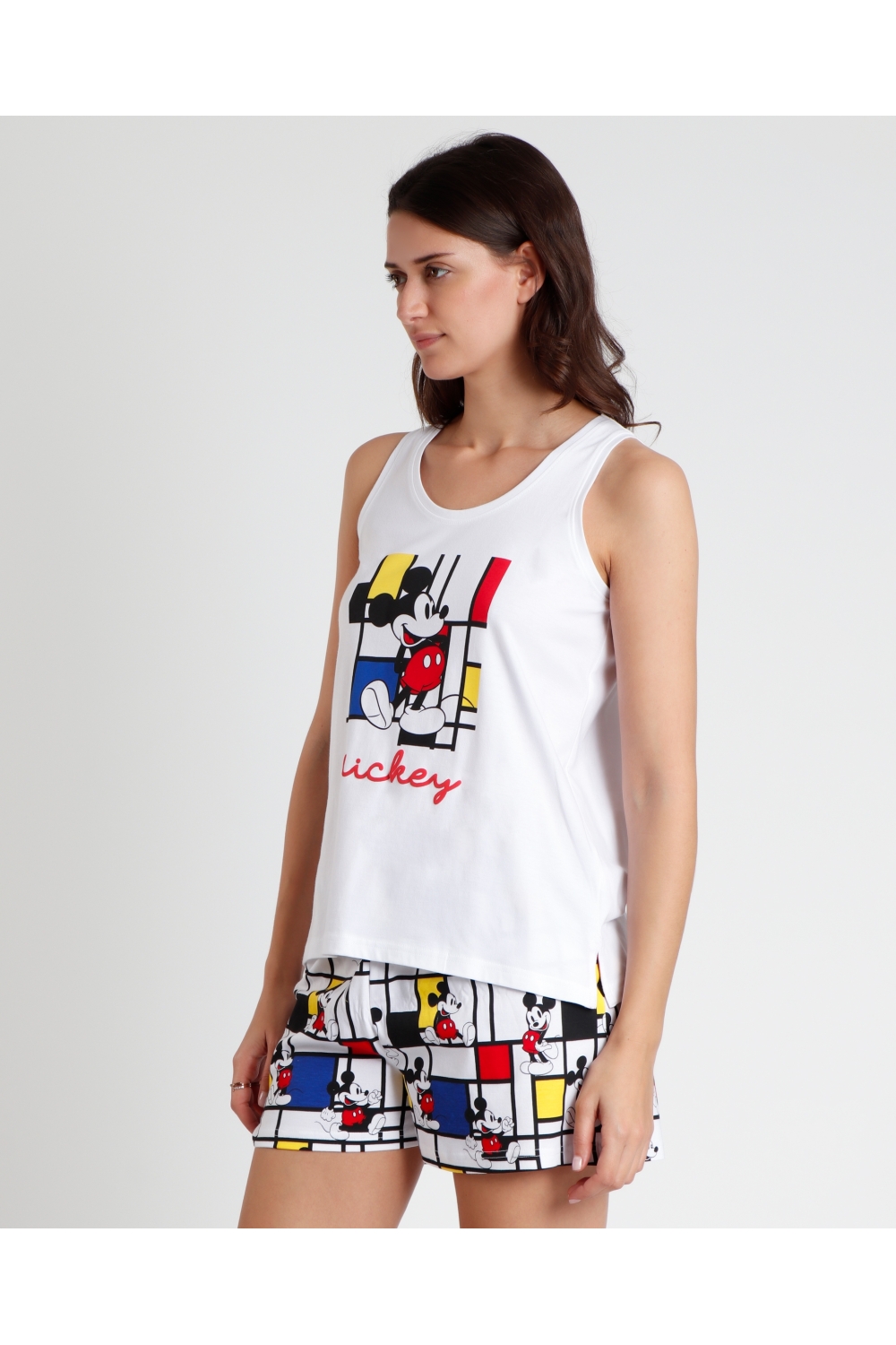 DISNEY Pijama Sin Mangas Mickey Mondrian para Niña BLANCO