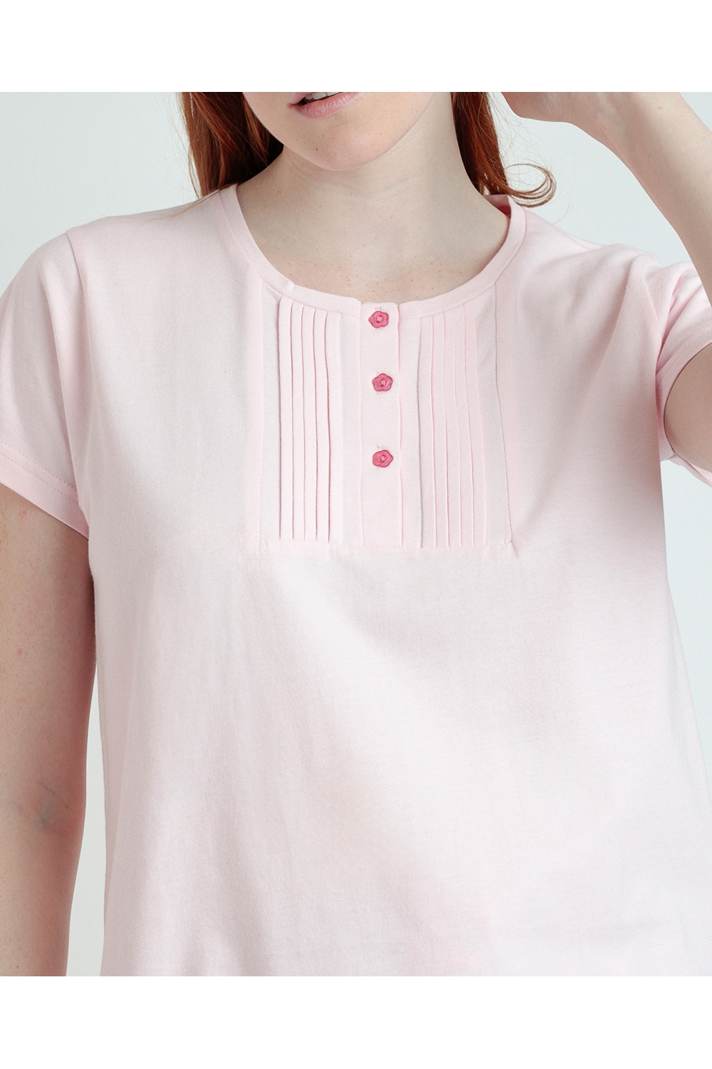 * Pijama de punto de algodón, de manga corta, cuello con tapeta con botones y pantalón corto.