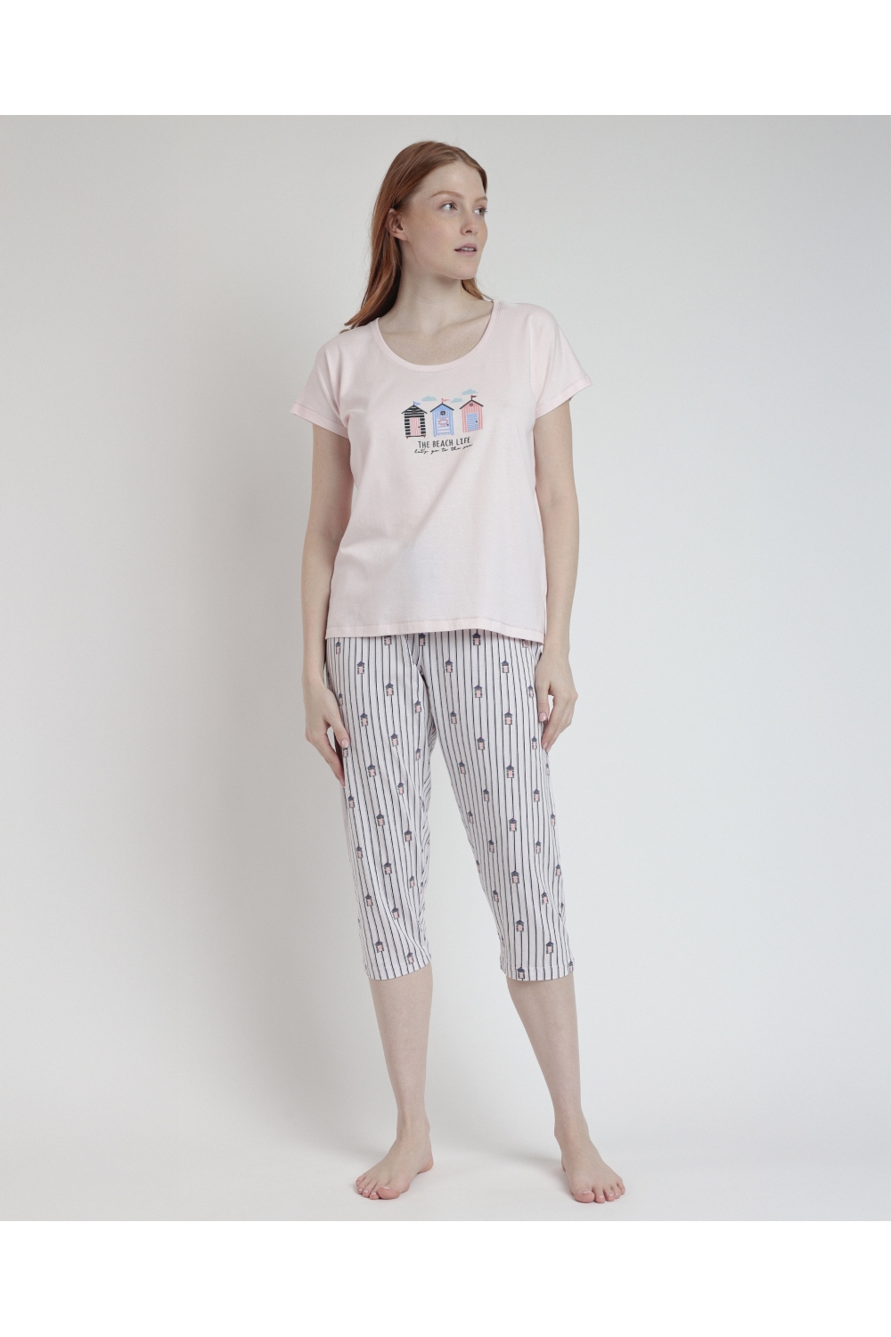 ADMAS Pijama Manga Caída Beach Life para Mujer ROSA