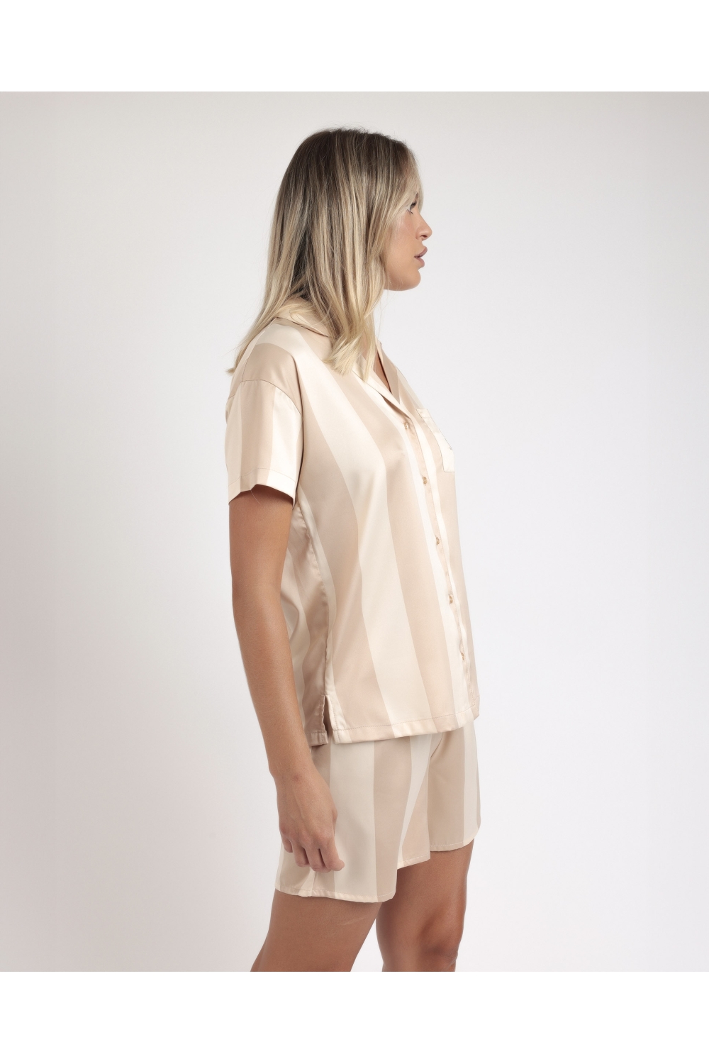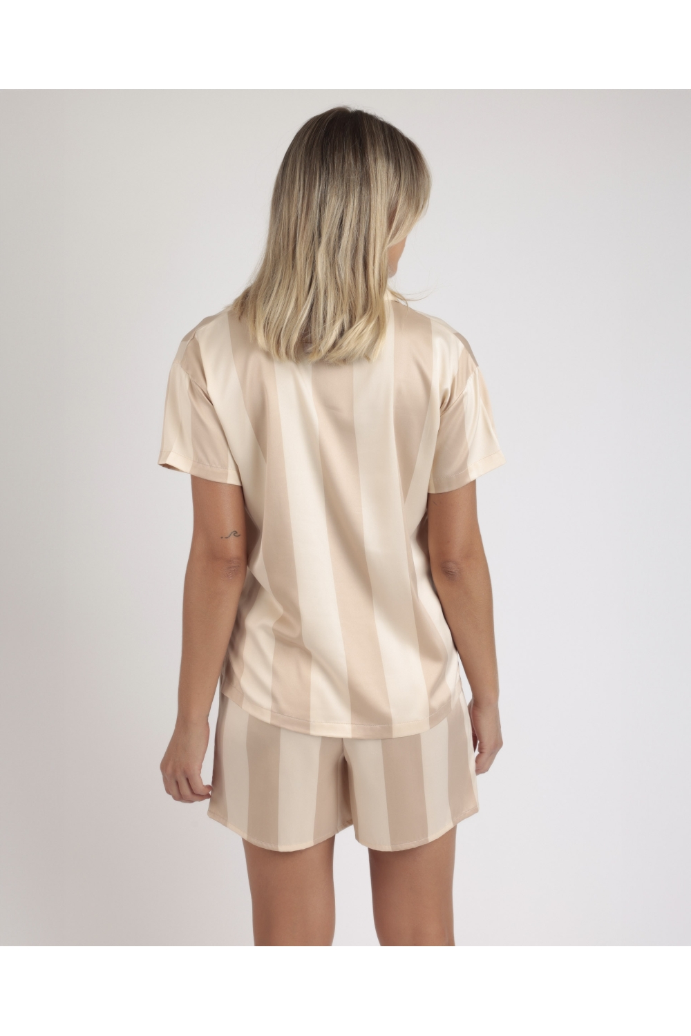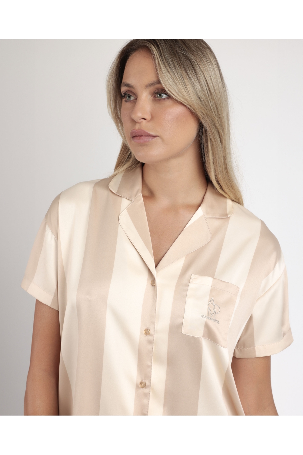 ADMAS CLASSIC Pijama Abierto Manga Corta Luxe Stripes para Mujer ORO