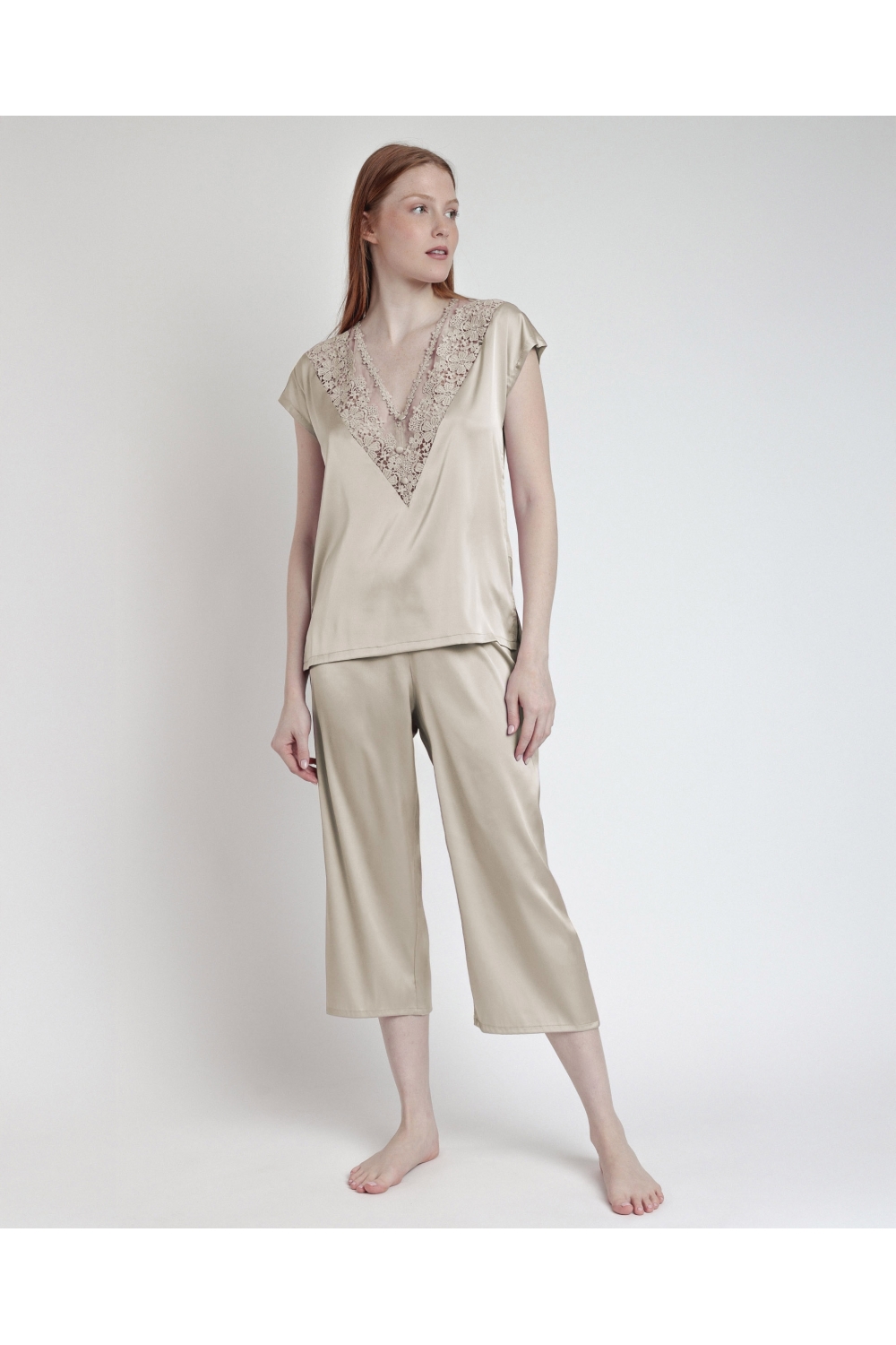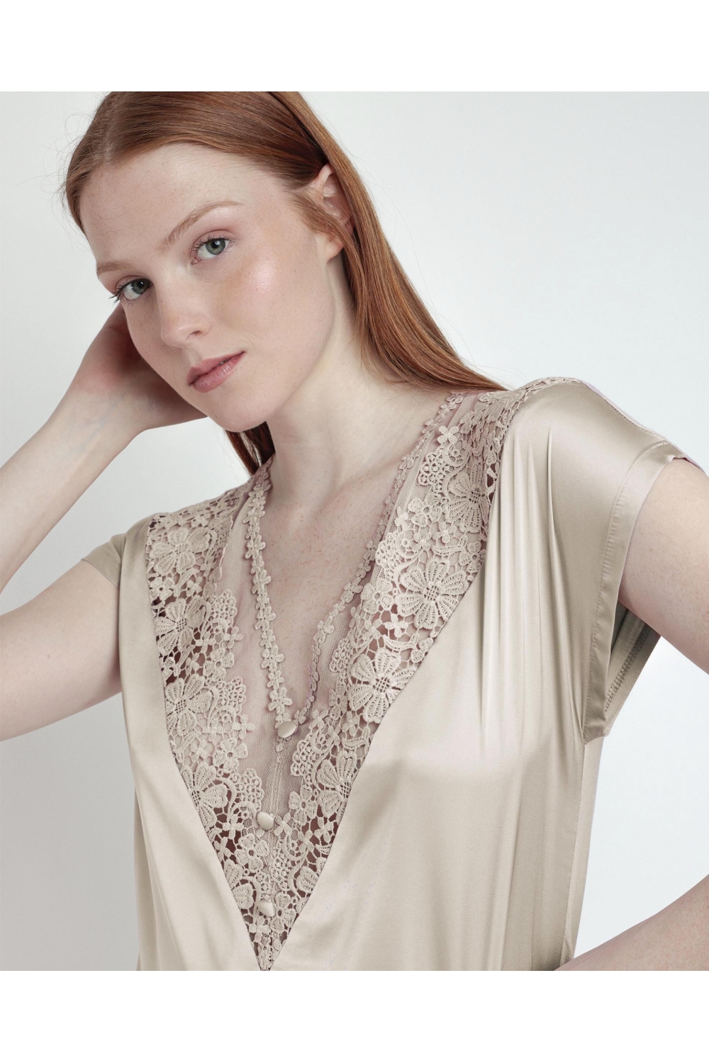 ADMAS CLASSIC Camisola Manga Caída Satin And Guipur para Mujer CAVA