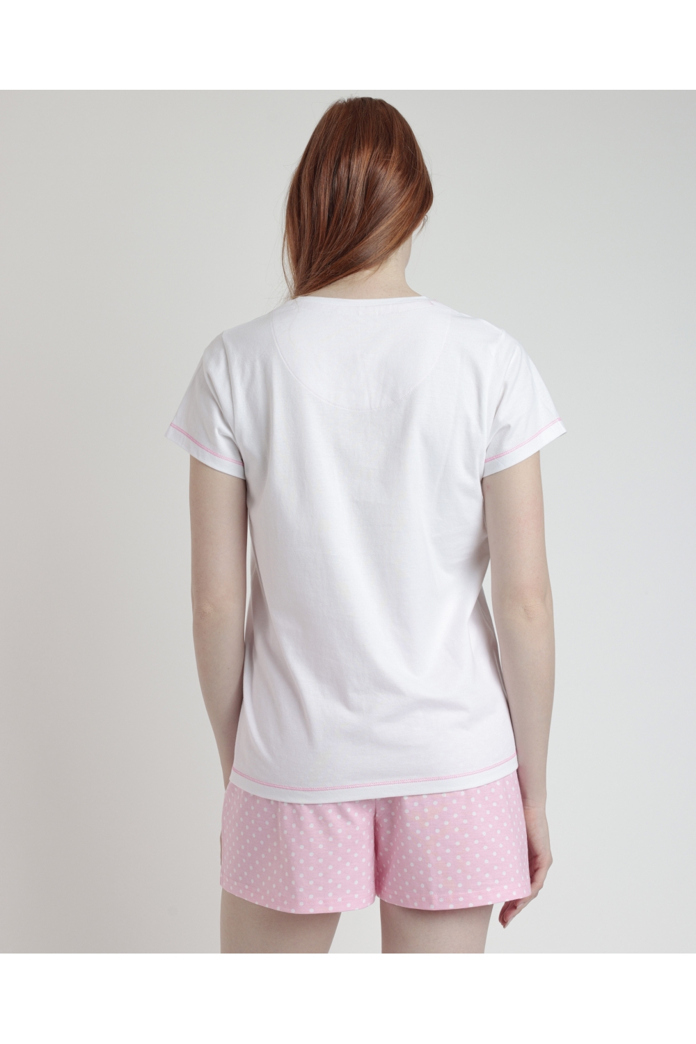 * Pijama de punto de algodón, de manga corta, cuello redondo y pantalón corto.