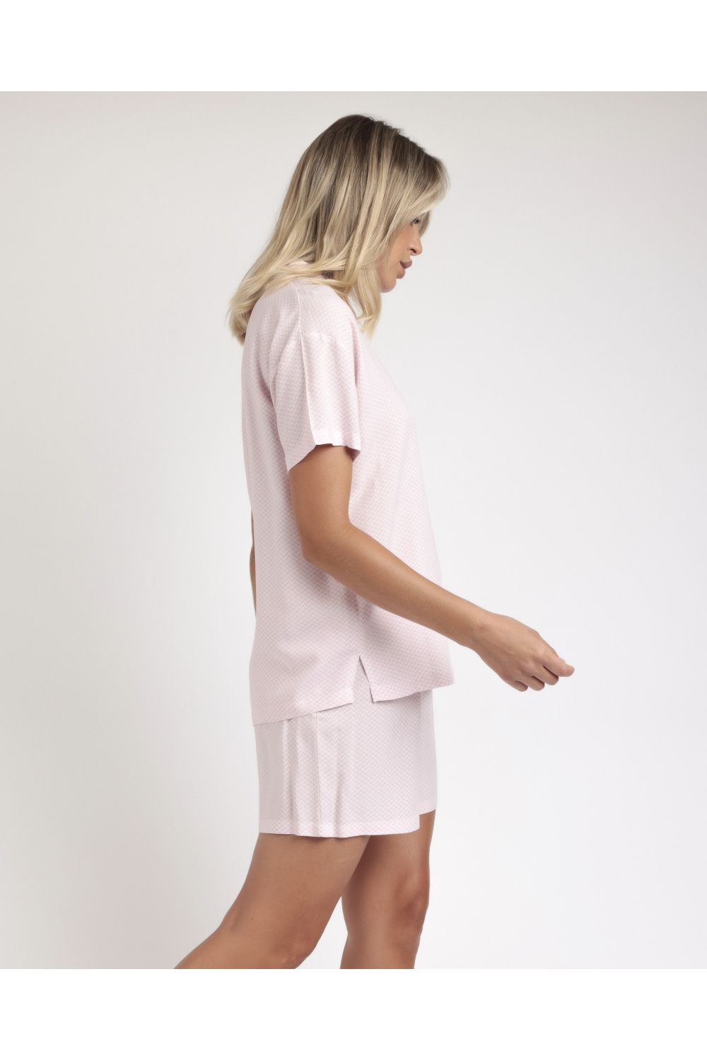 * Pijama abierto de tela viscosa, de manga corta y pantalón corto.