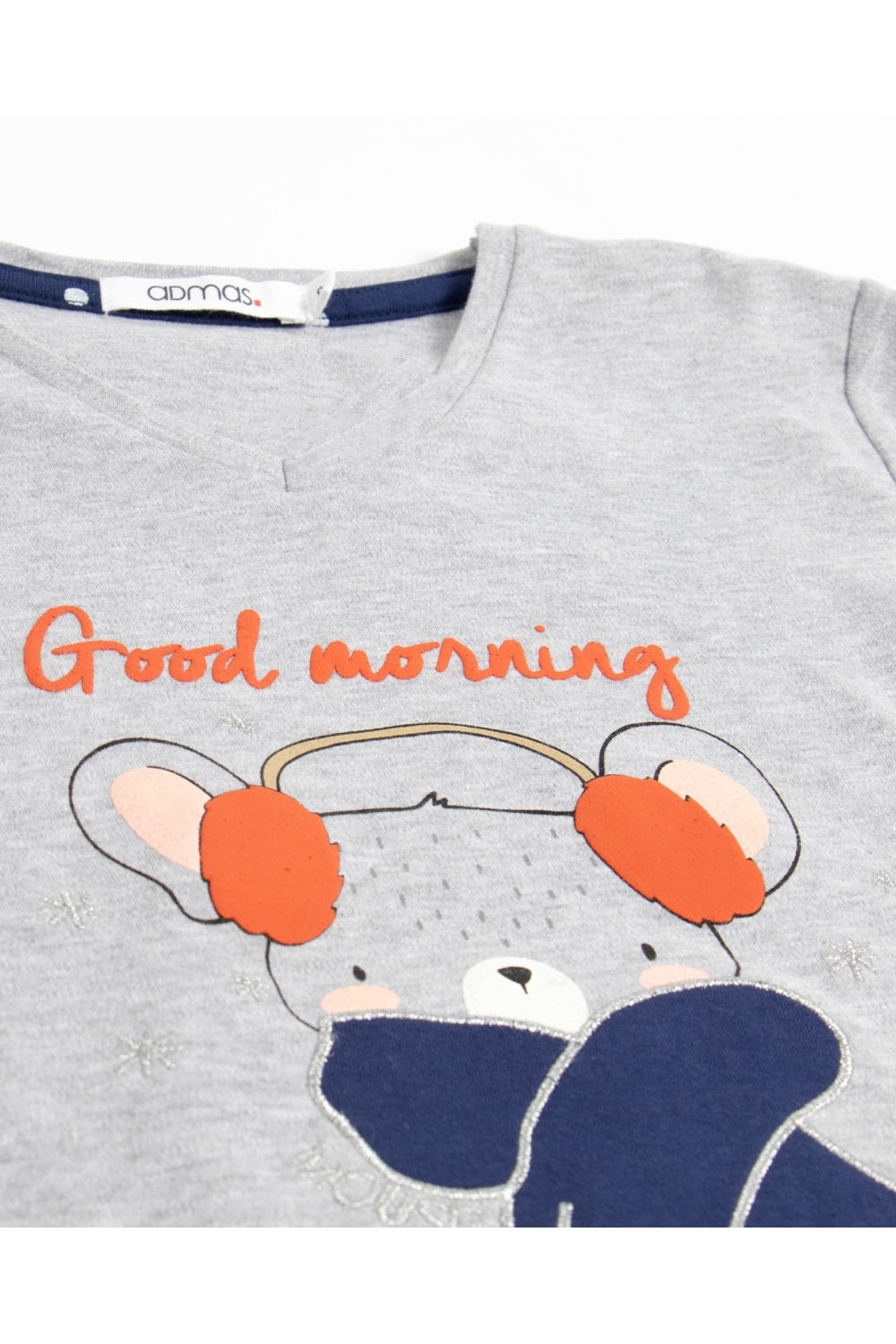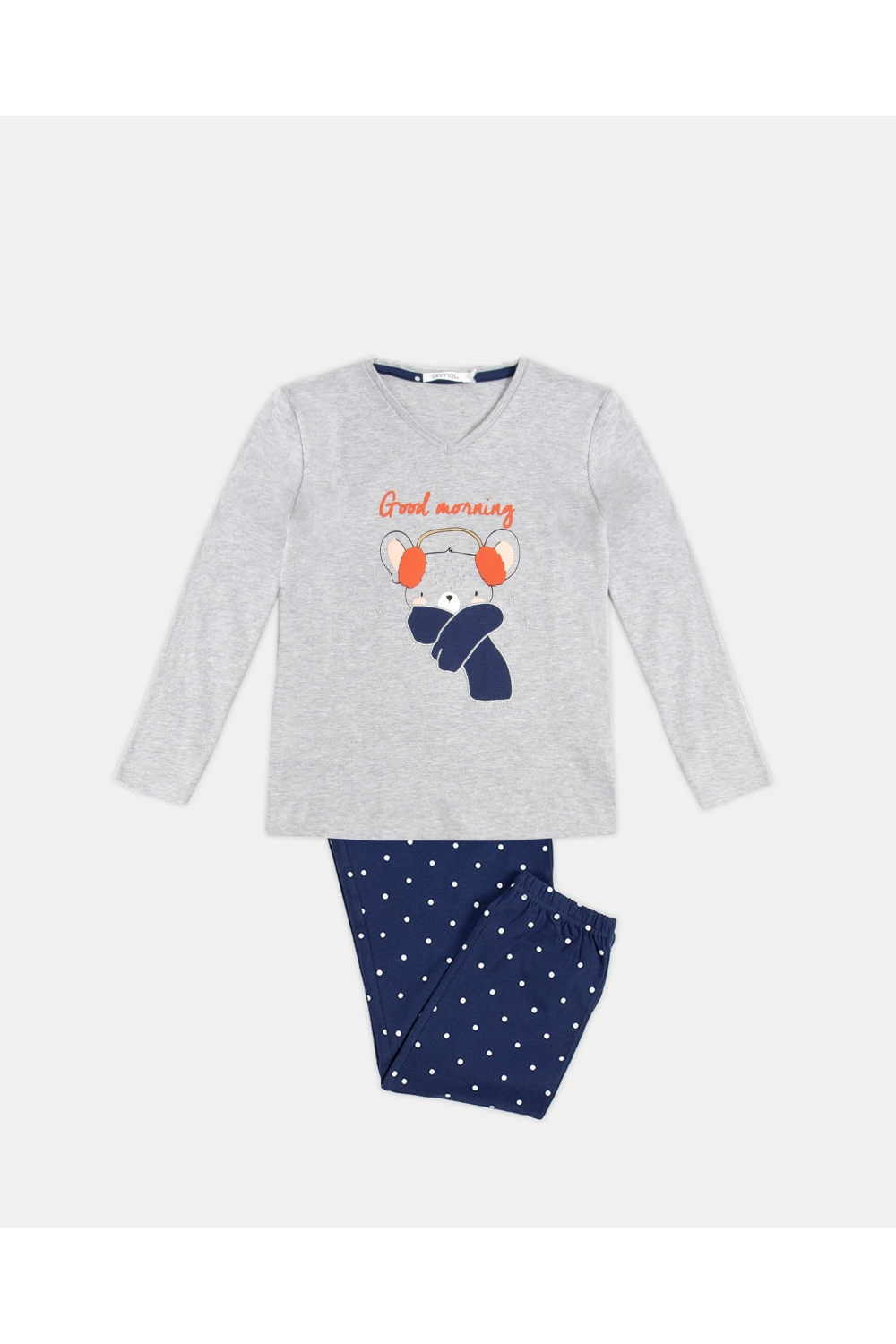 ADMAS Pijama Manga Larga Good Morning Mouse para Niña GRIS JASPE