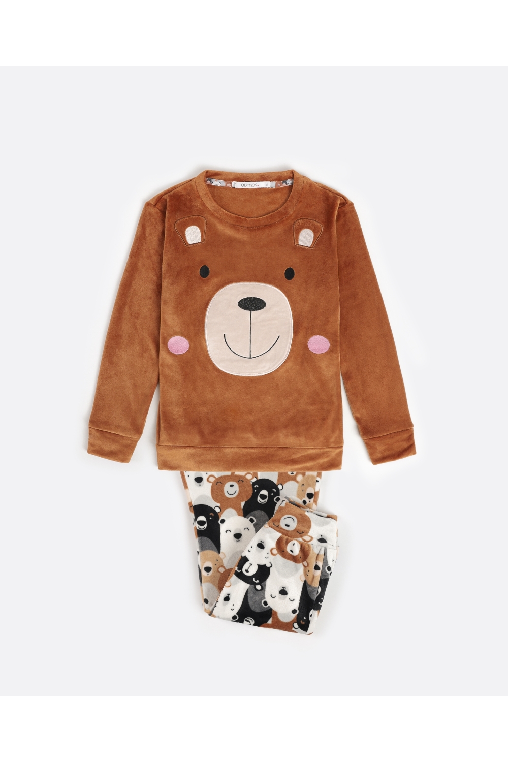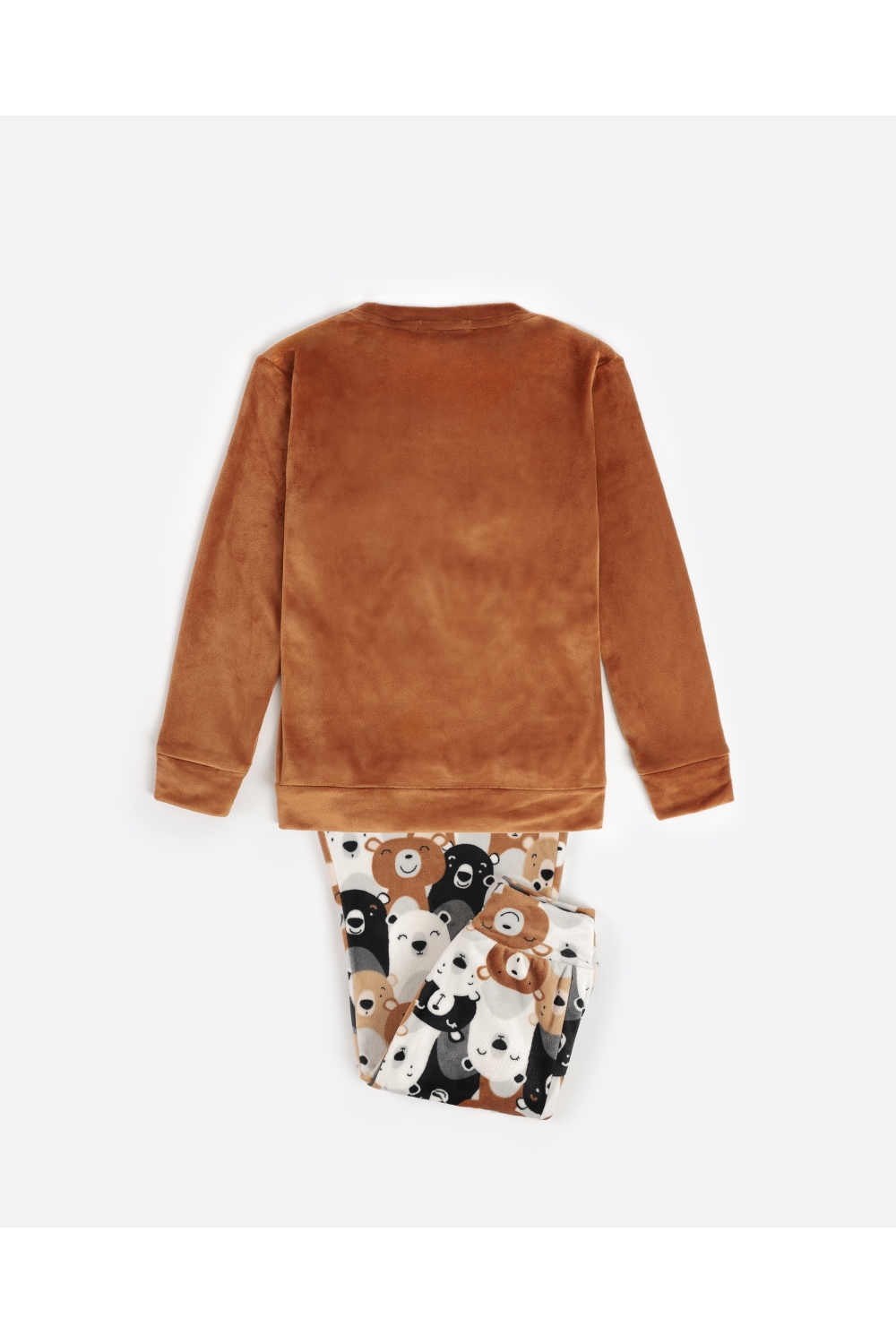 ADMAS Pijama Manga Larga Velvet Family Bear para Hombre MARRON