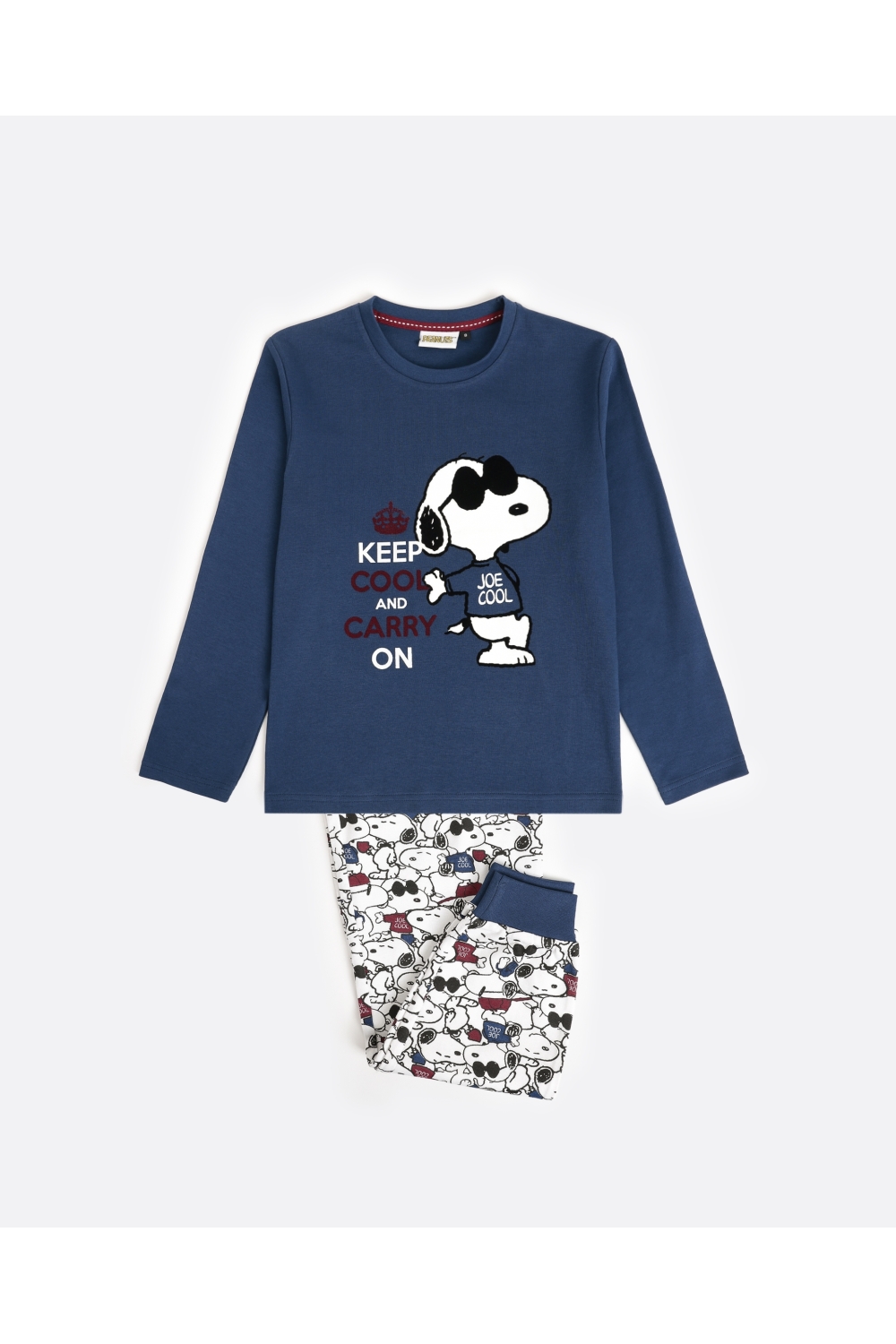 PEANUTS Pijama Manga Larga Snoopy Cool para Niño MARINO