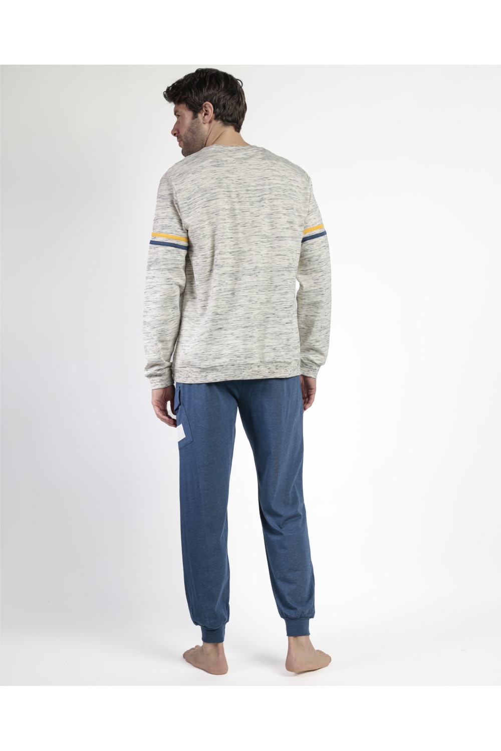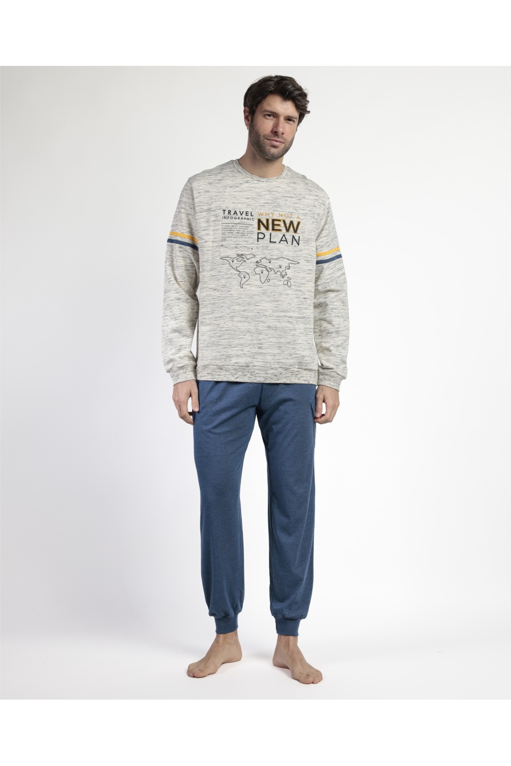 * Pijama de punto de algodón, de manga larga, cuello redondo y pantalón largo.