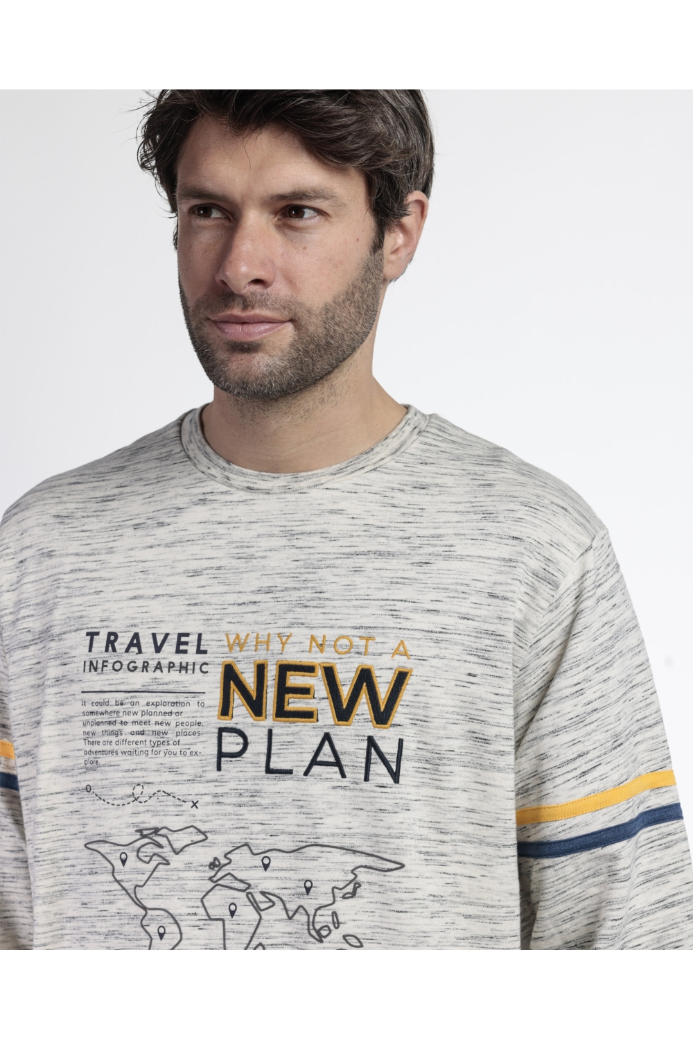 * Camiseta de tejido felpa slub, tipo chándal, en color piedra, con detalles bordados, de diseño personalizado de la marca New Plan.