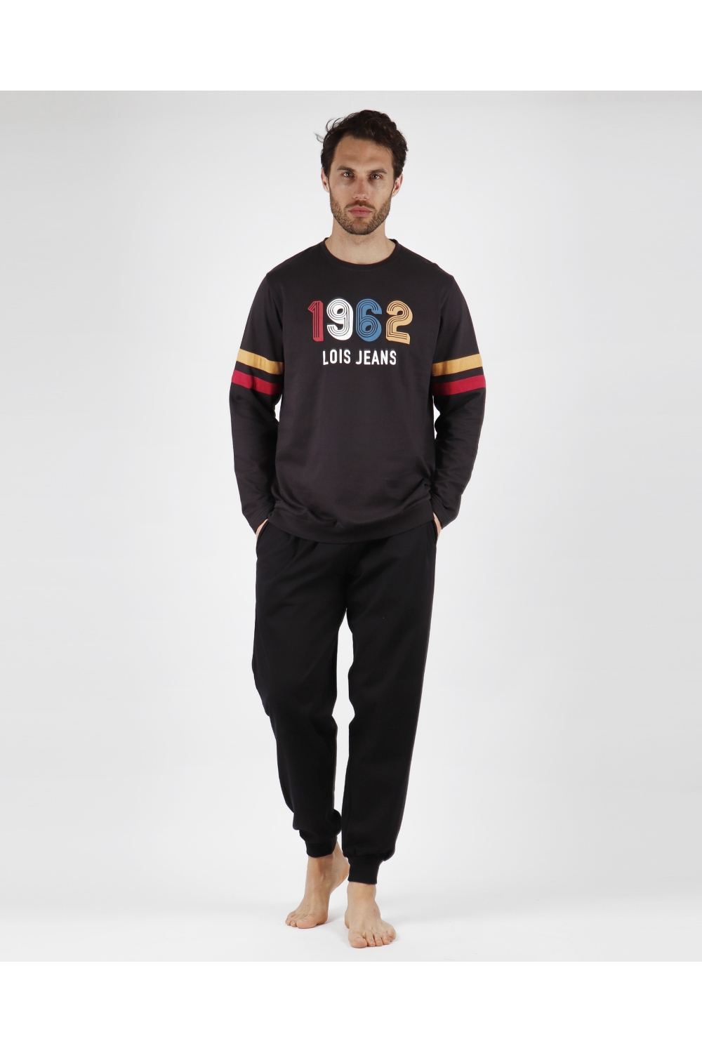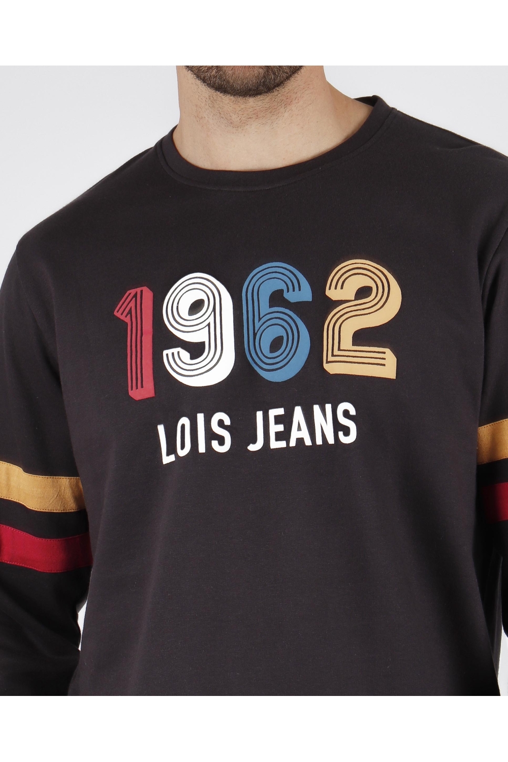 * Camiseta de tejido felpa, de color marengo, con dibujo estampado y detalles en relieve, personalizada de la marca Lois.