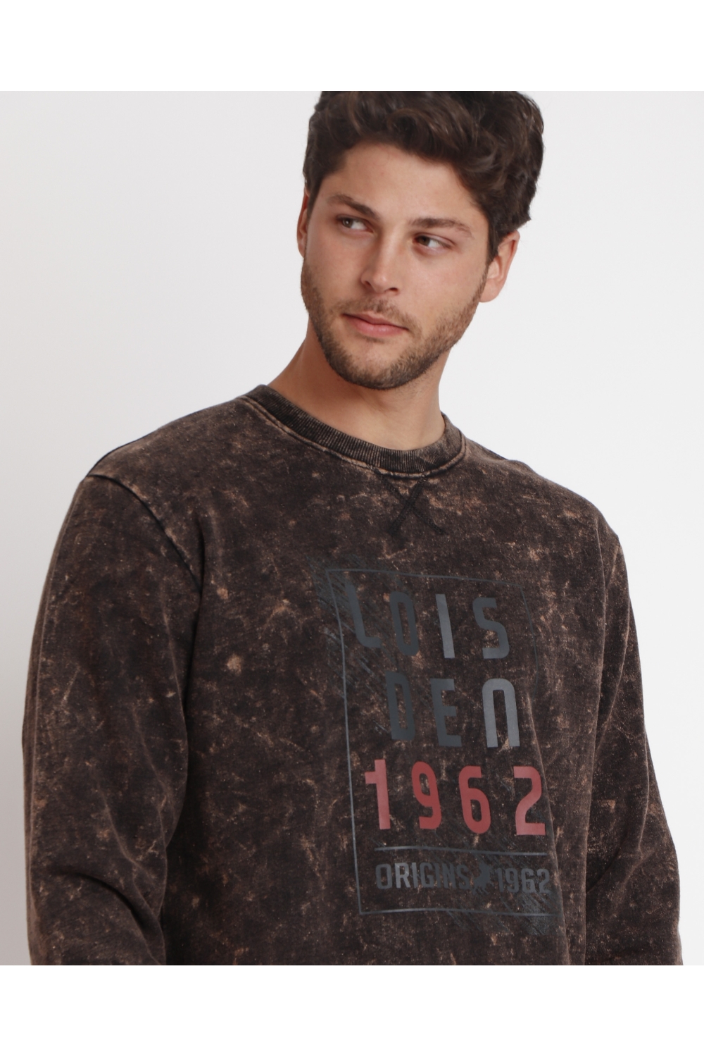 * Camiseta felpa vigoré, en color marrón, con dibujo estampado, de diseño personalizado de la marca Lois.