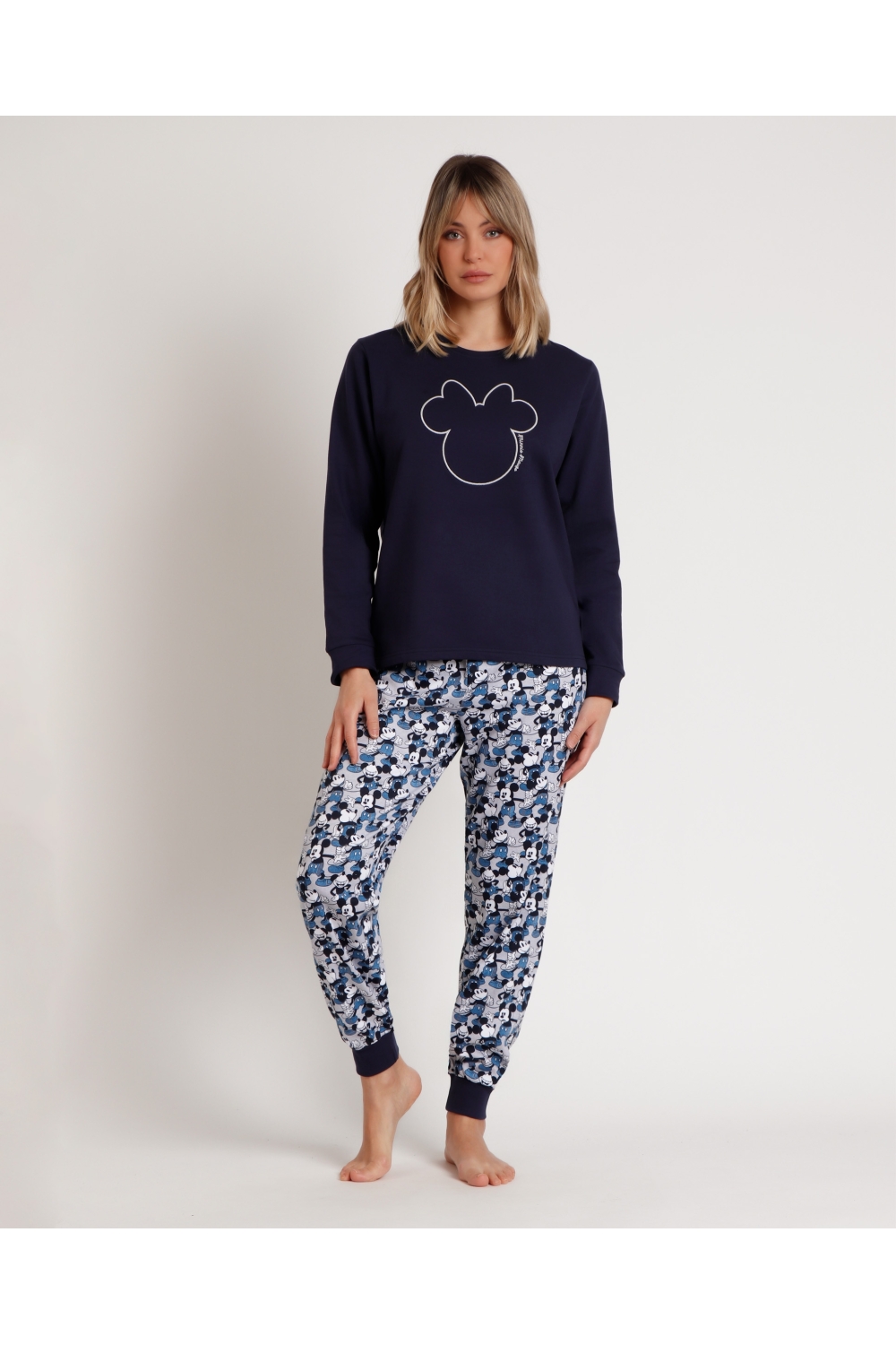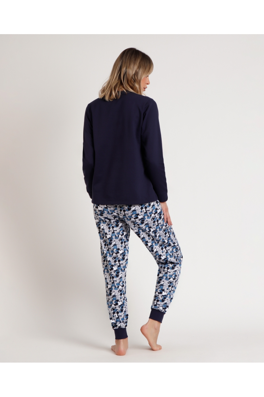 DISNEY Pijama Manga Larga Felpa Mickey Jeans para Hombre MARINO