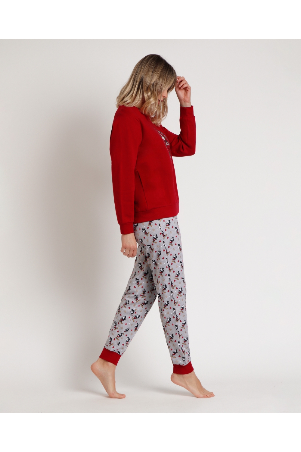DISNEY Pijama Manga Larga King Mickey para Mujer BURDEOS