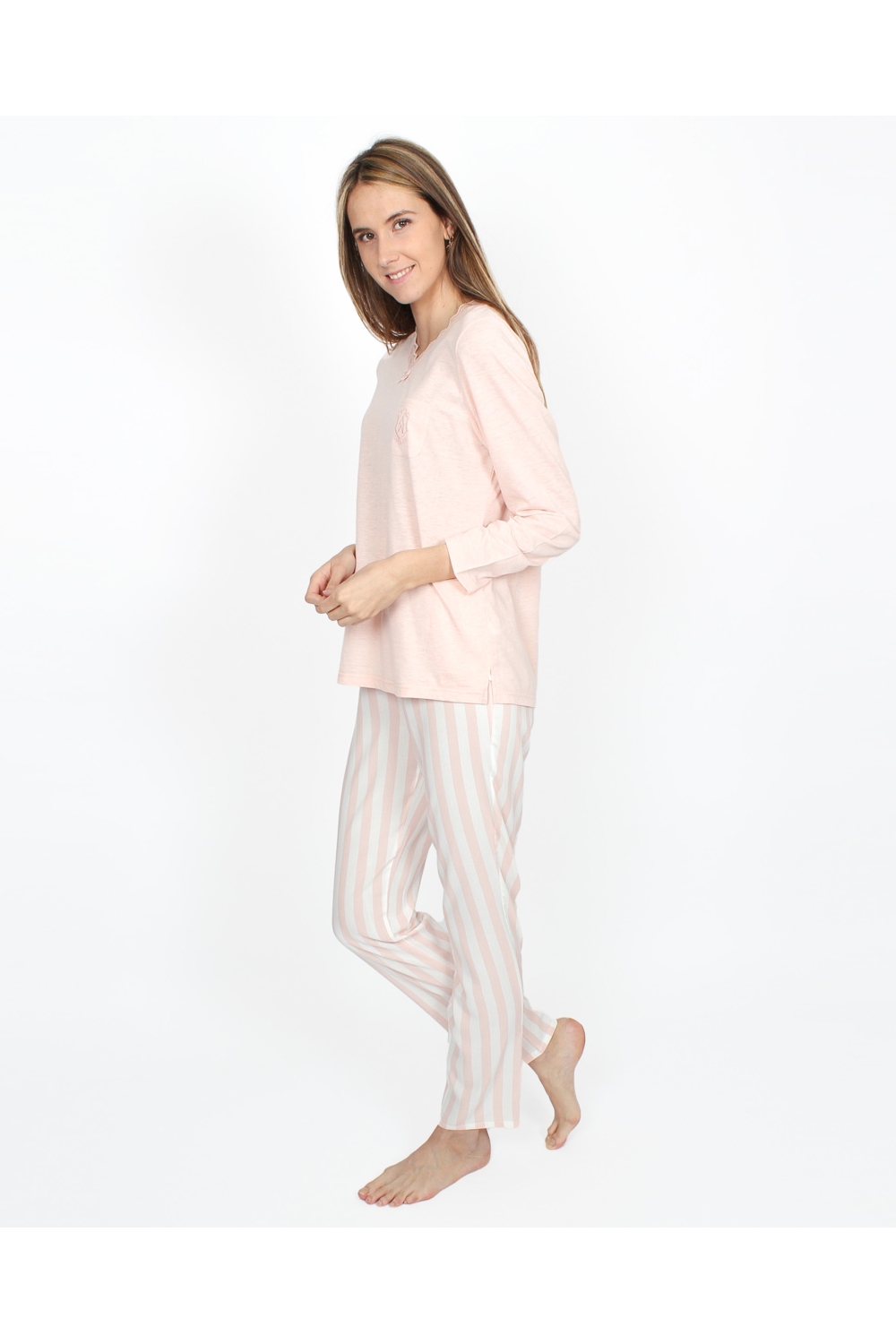 ADMAS CLASSIC Pijama Manga Larga Classic Stripes para Mujer ROSA