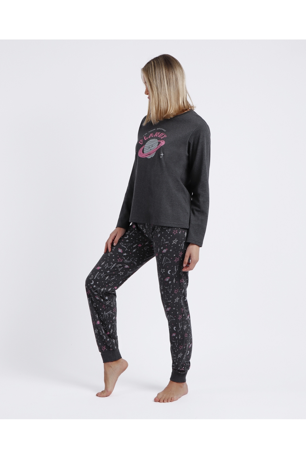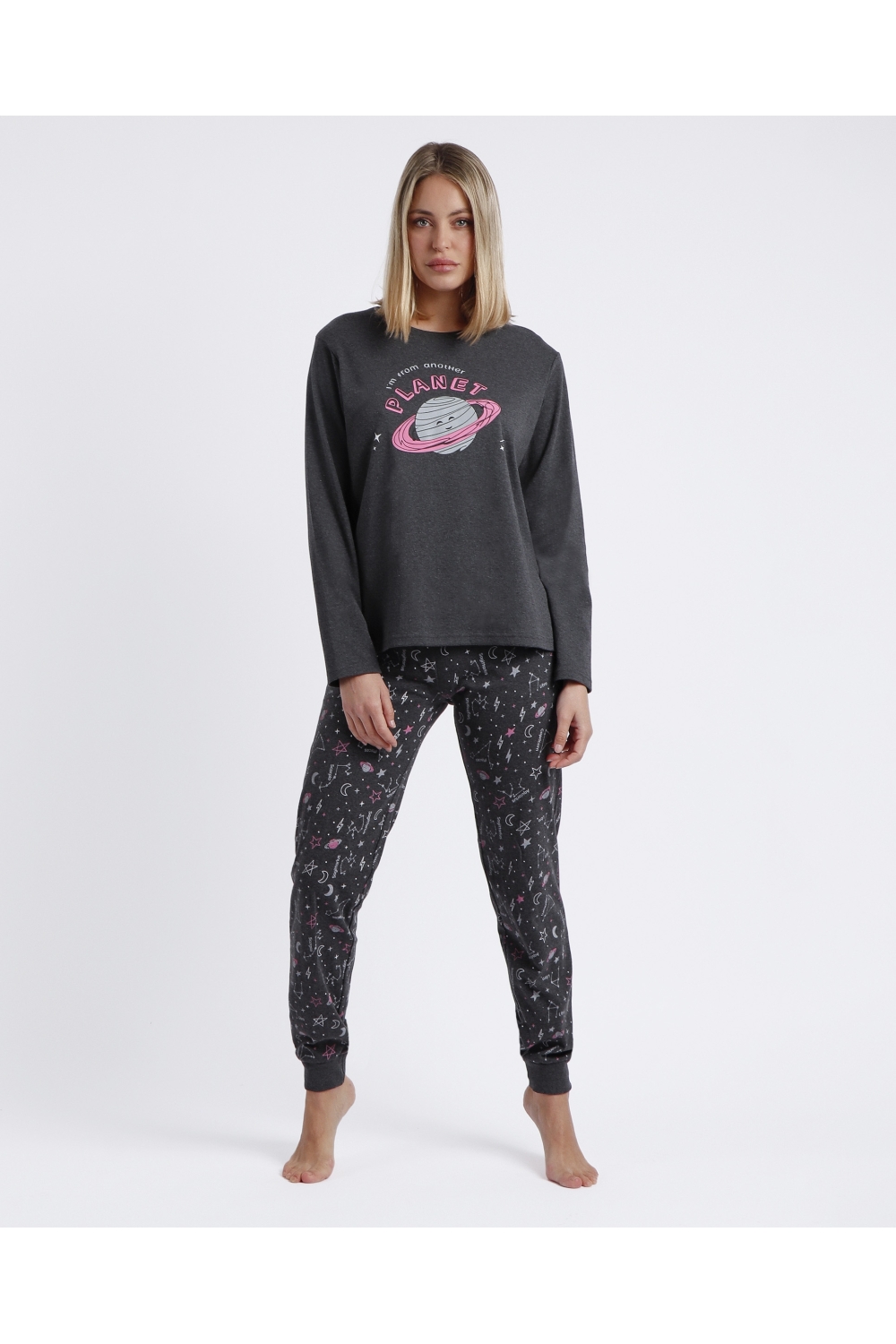 DIVER Pijama Manga Larga Planet para Niña GRIS JASPE