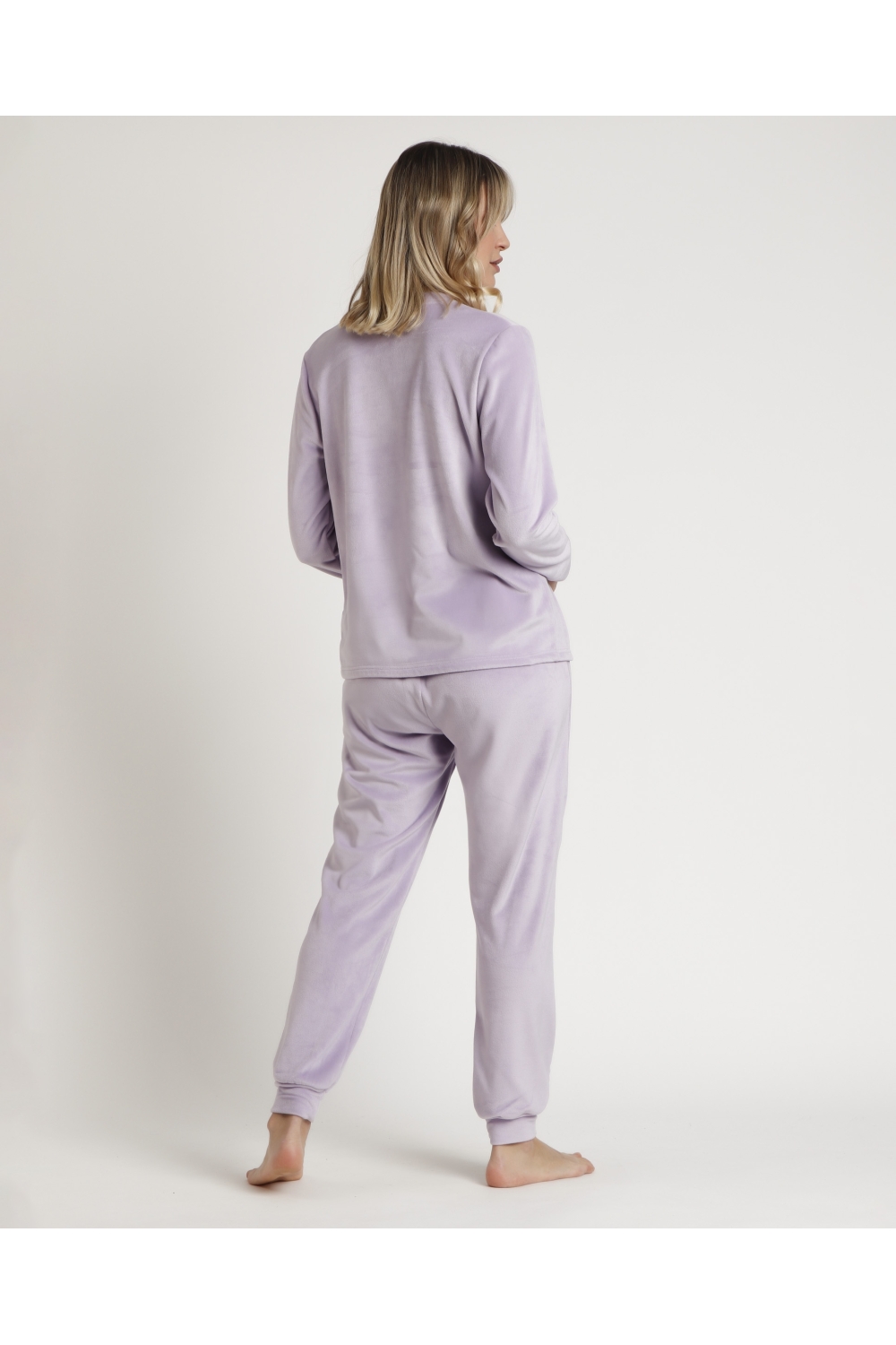 * Pijama de tejido calentito de terciopelo de doble cara, especial soft, de manga larga, cuello redondo y pantalón largo.