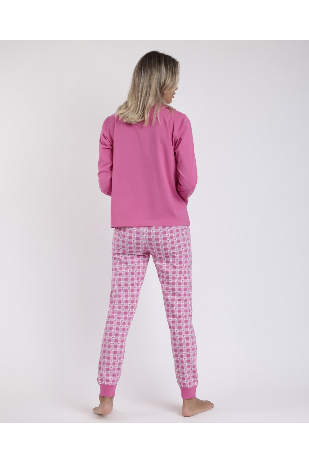 * Pijama de punto de algodón, de manga larga, cuello redondo y pantalón largo.