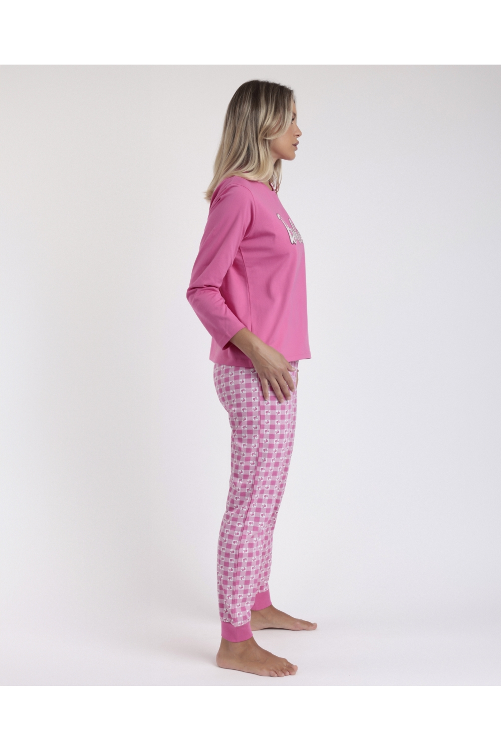 * Pijama de punto de algodón, de manga larga, cuello redondo y pantalón largo.