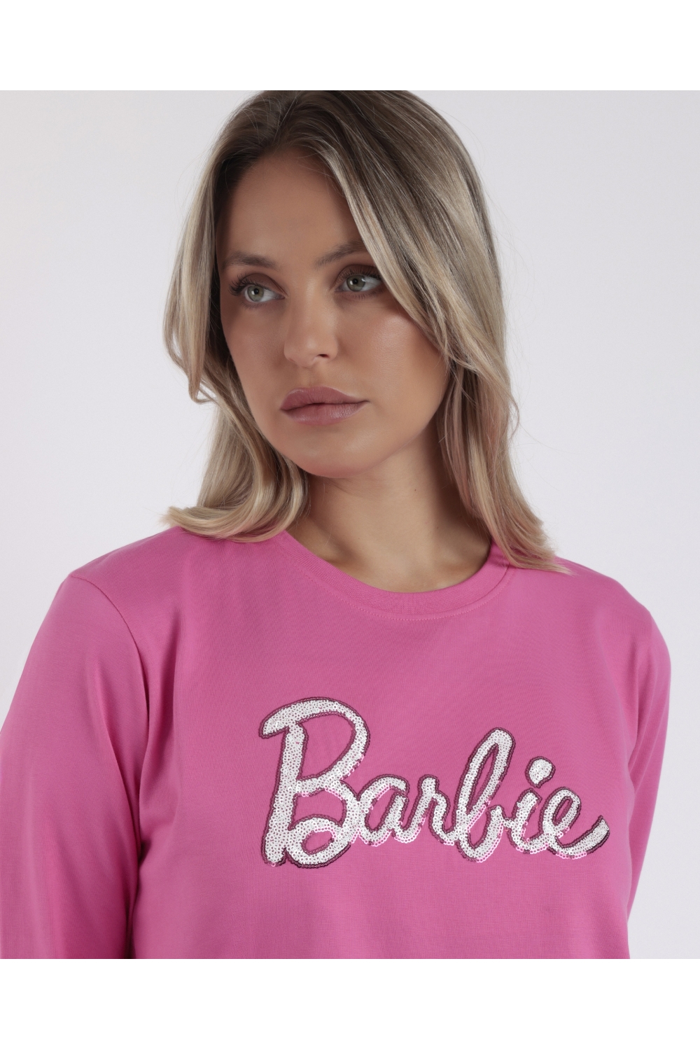 * Camiseta de punto, de color rosa, con detalles bordados con lentejuelas, personalizada de la marca Barbie.